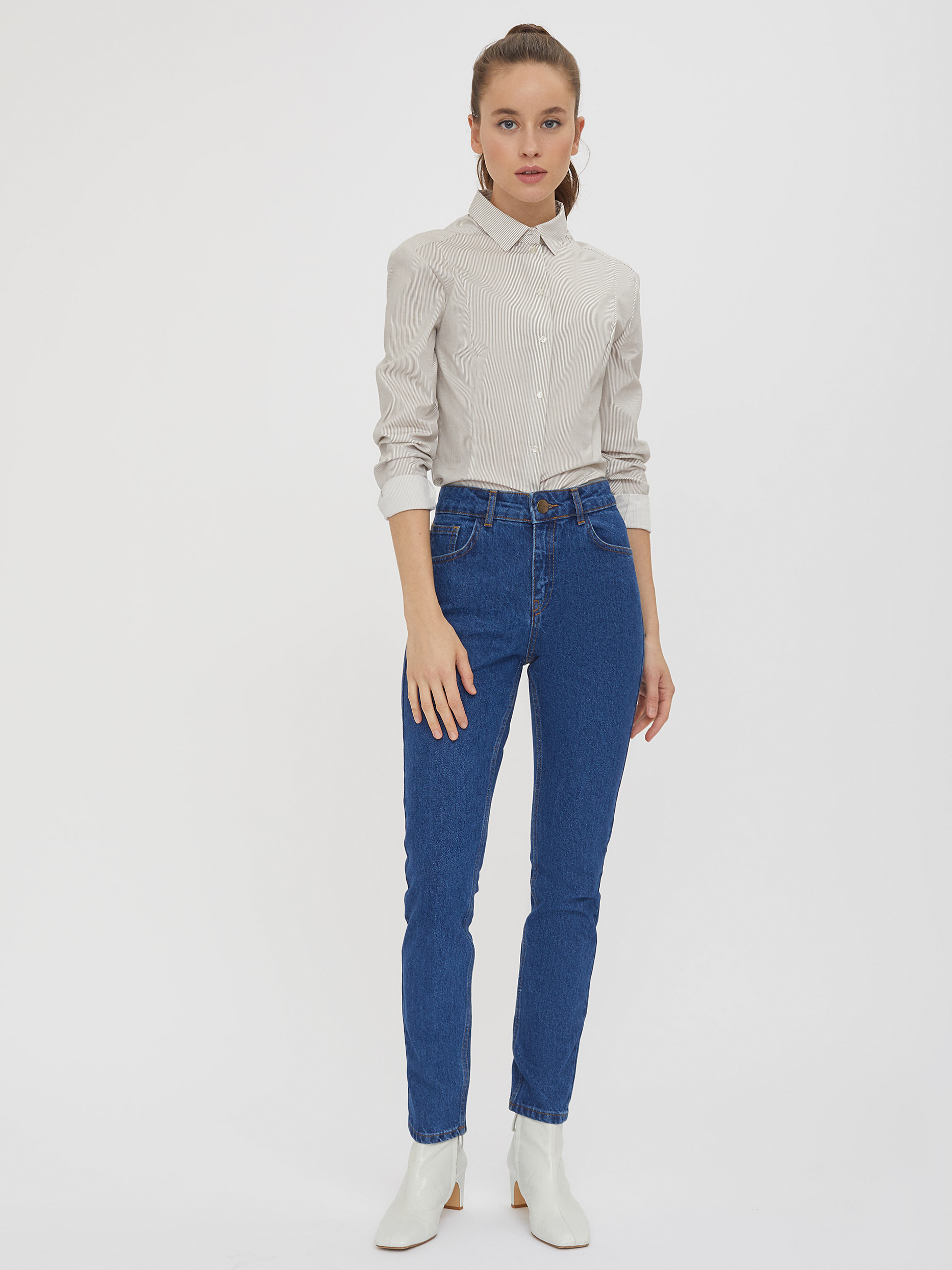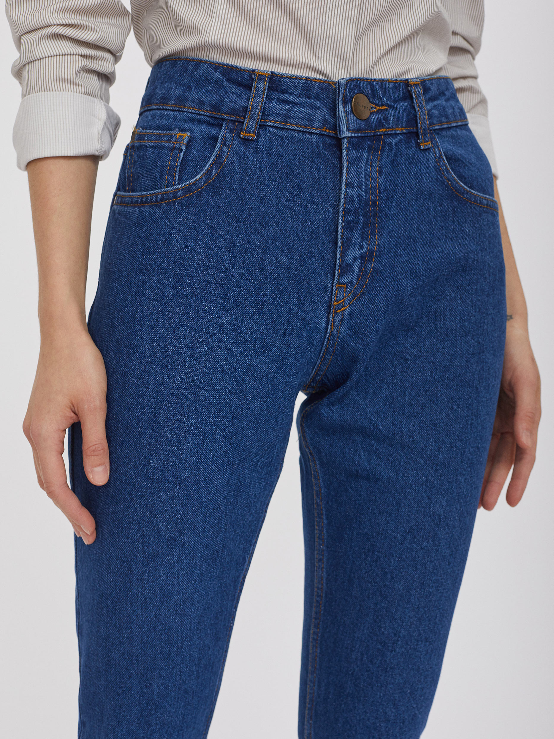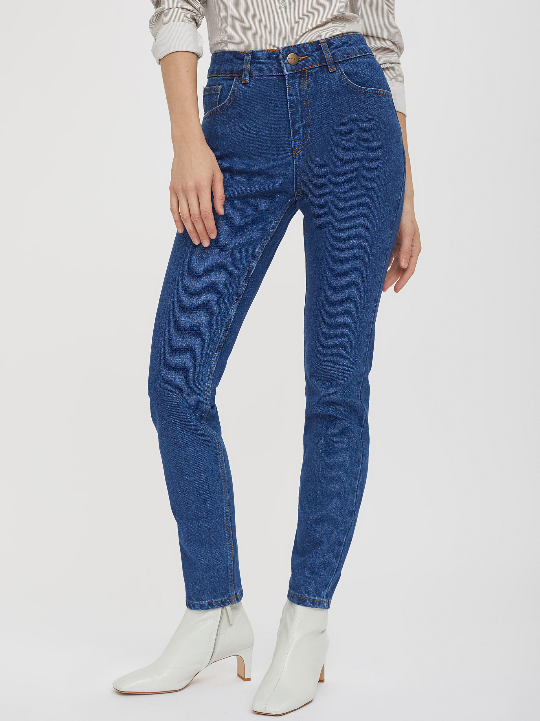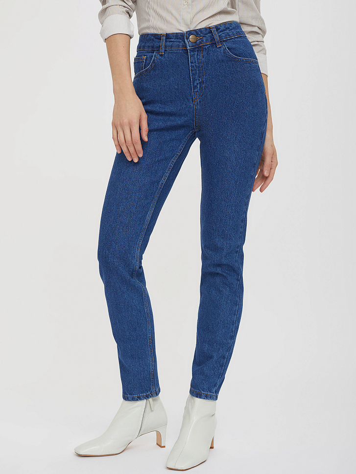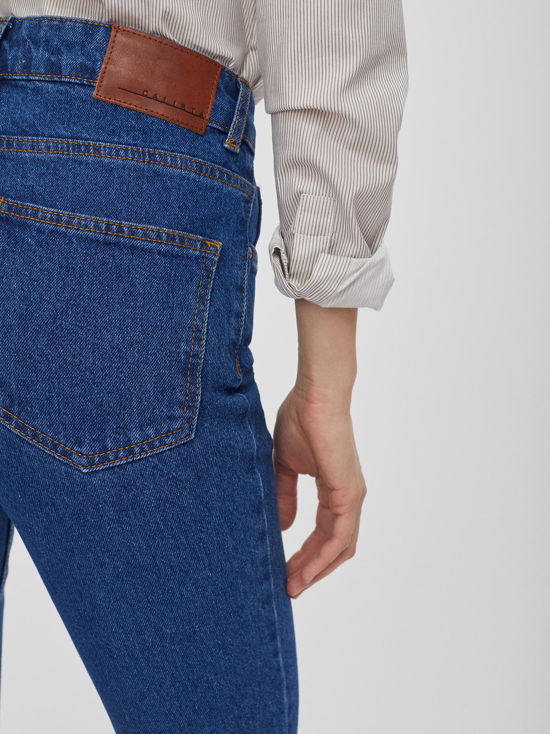 Джинсы облегающего кроя, выполненные из 100% хлопка. Средняя посадка, прорезные карманы по бокам, накладные карманы сзади. Застегиваются на молнию и металлическую матовую пуговицу с изображением логотипа.