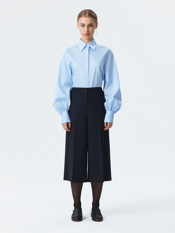 Костюмные бермуды со стрелками пригодятся для будней в офисе и повседневных встреч. Плотный текстиль из поливискозы не тянется и не требует особого ухода. Шорты длиной ниже колена расслабленно сидят по фигуре и не сковывают движения.