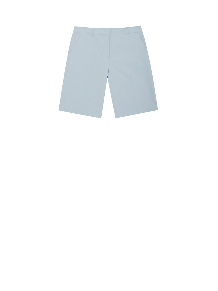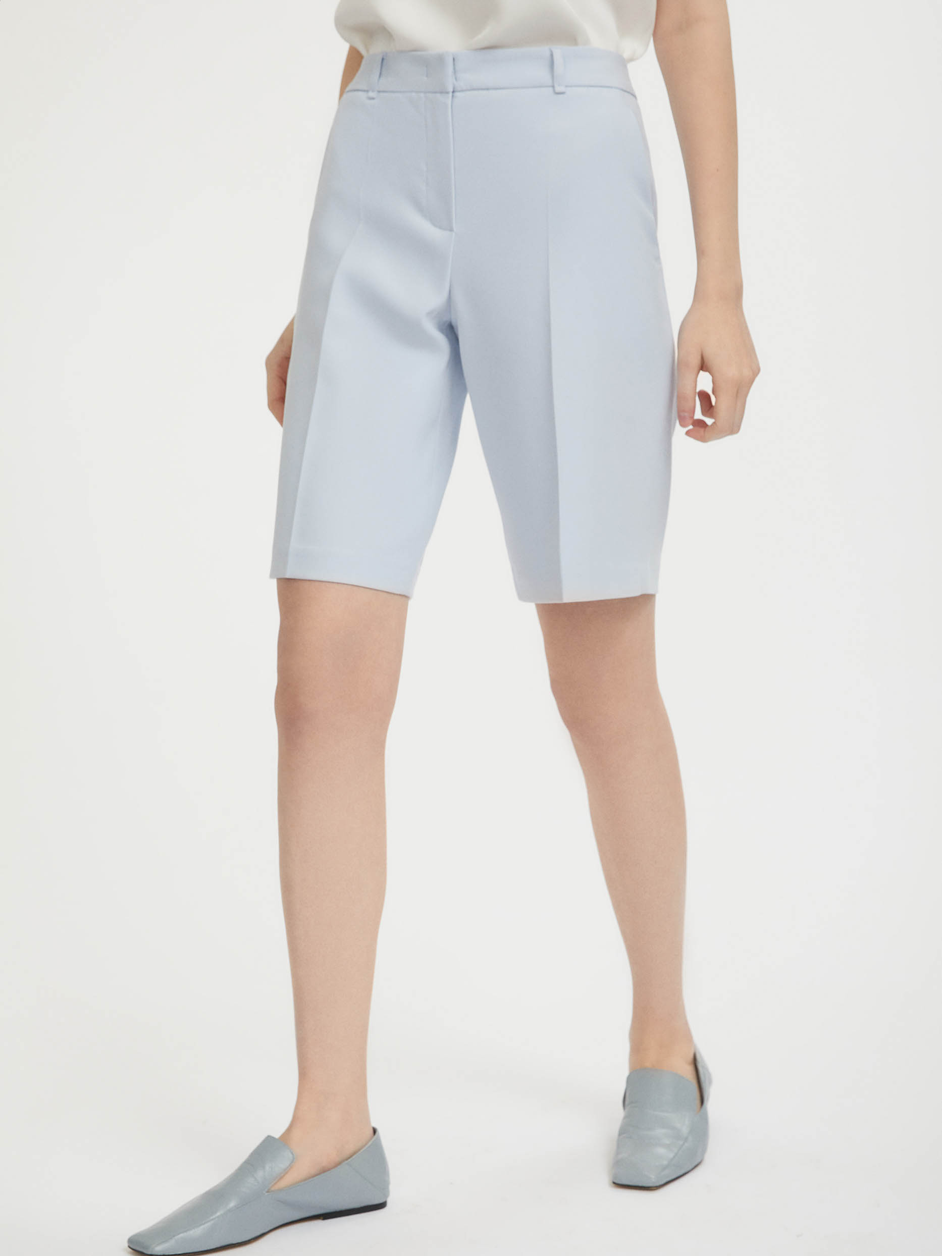Костюмные бермуды. Высокая посадка, втачной пояс со шлевками, боковые карманы.
