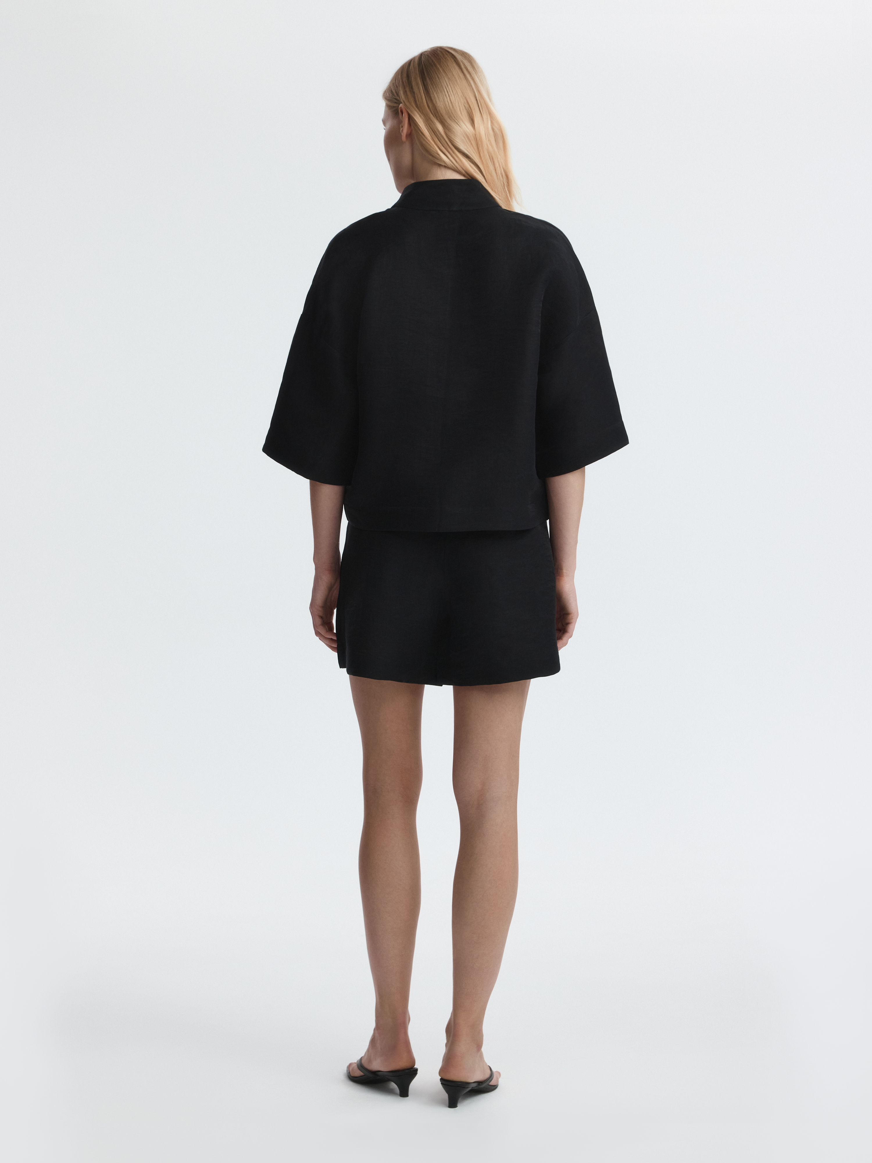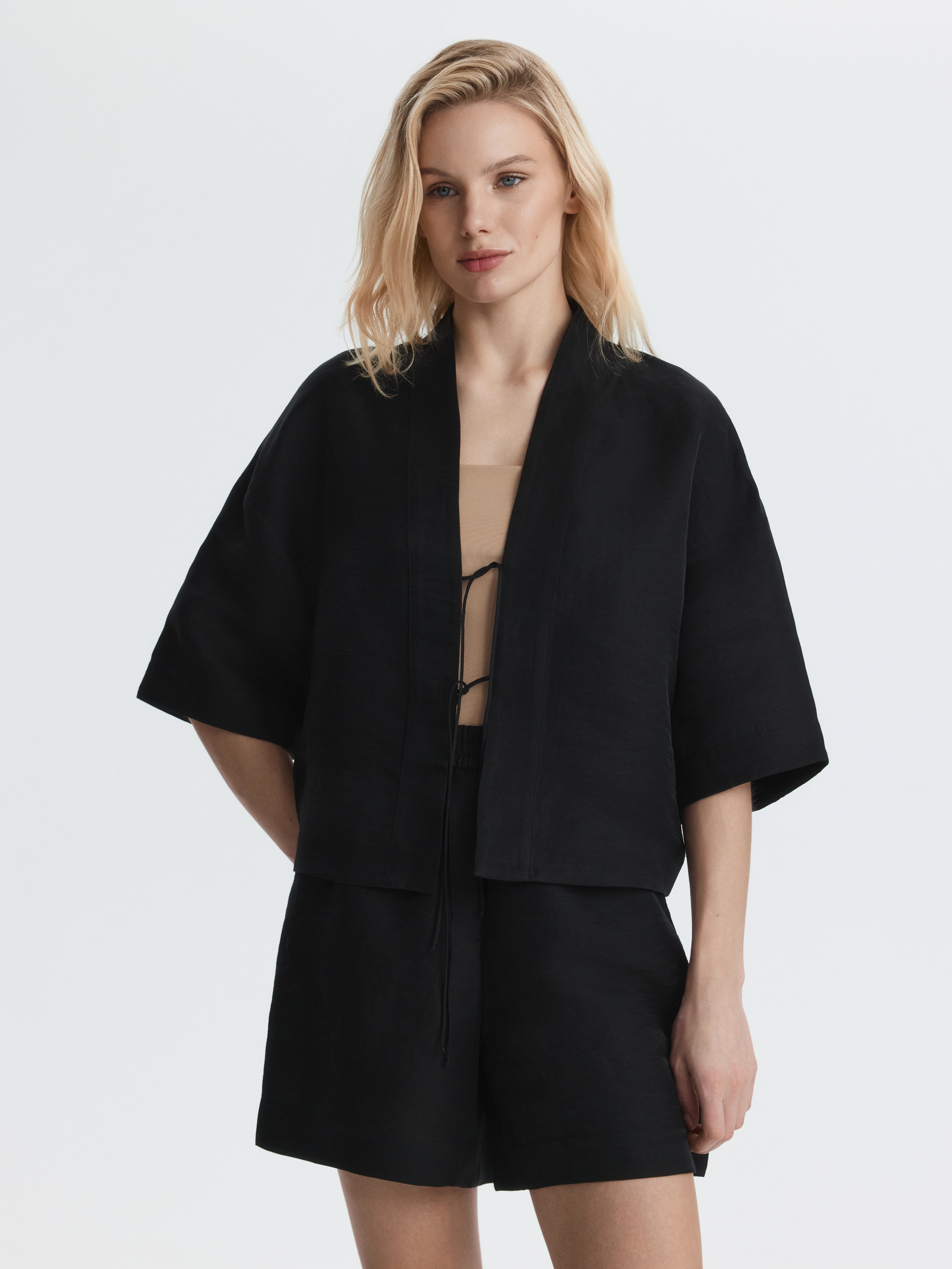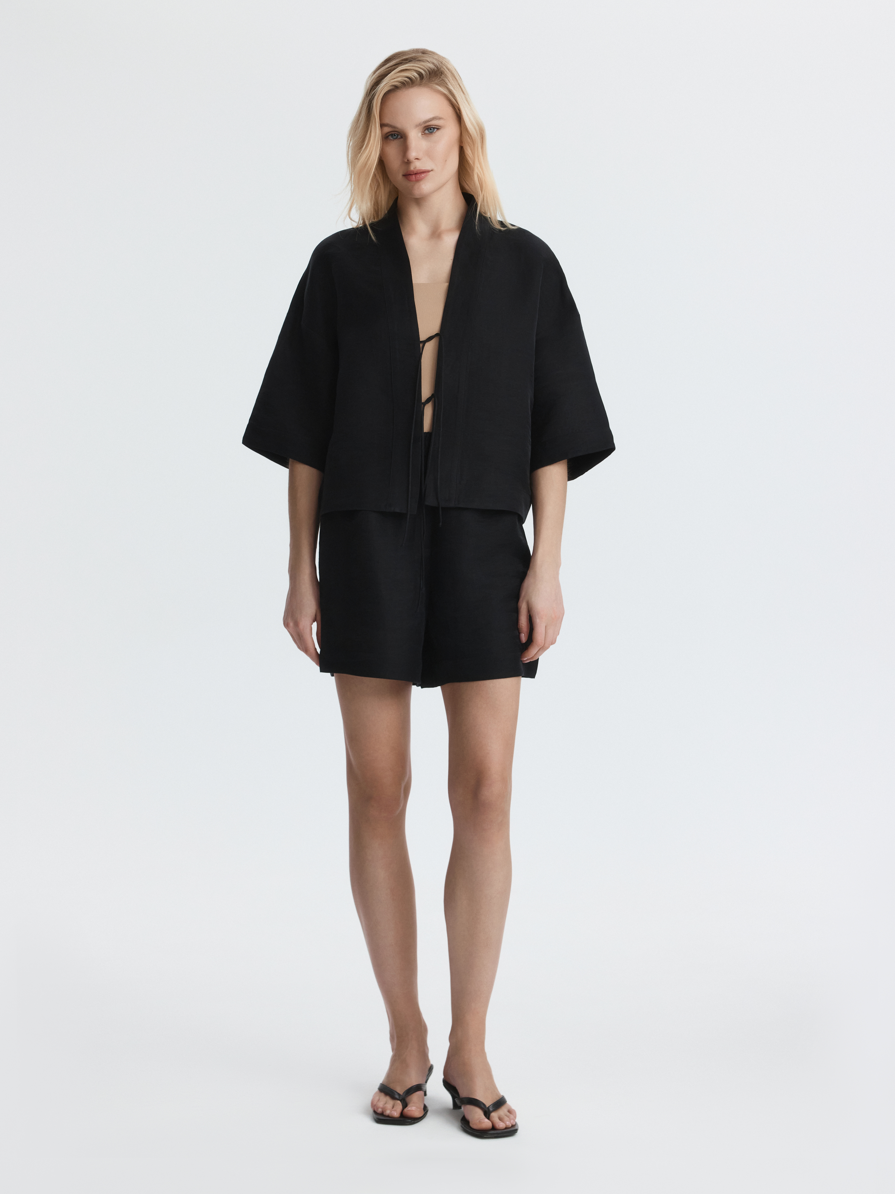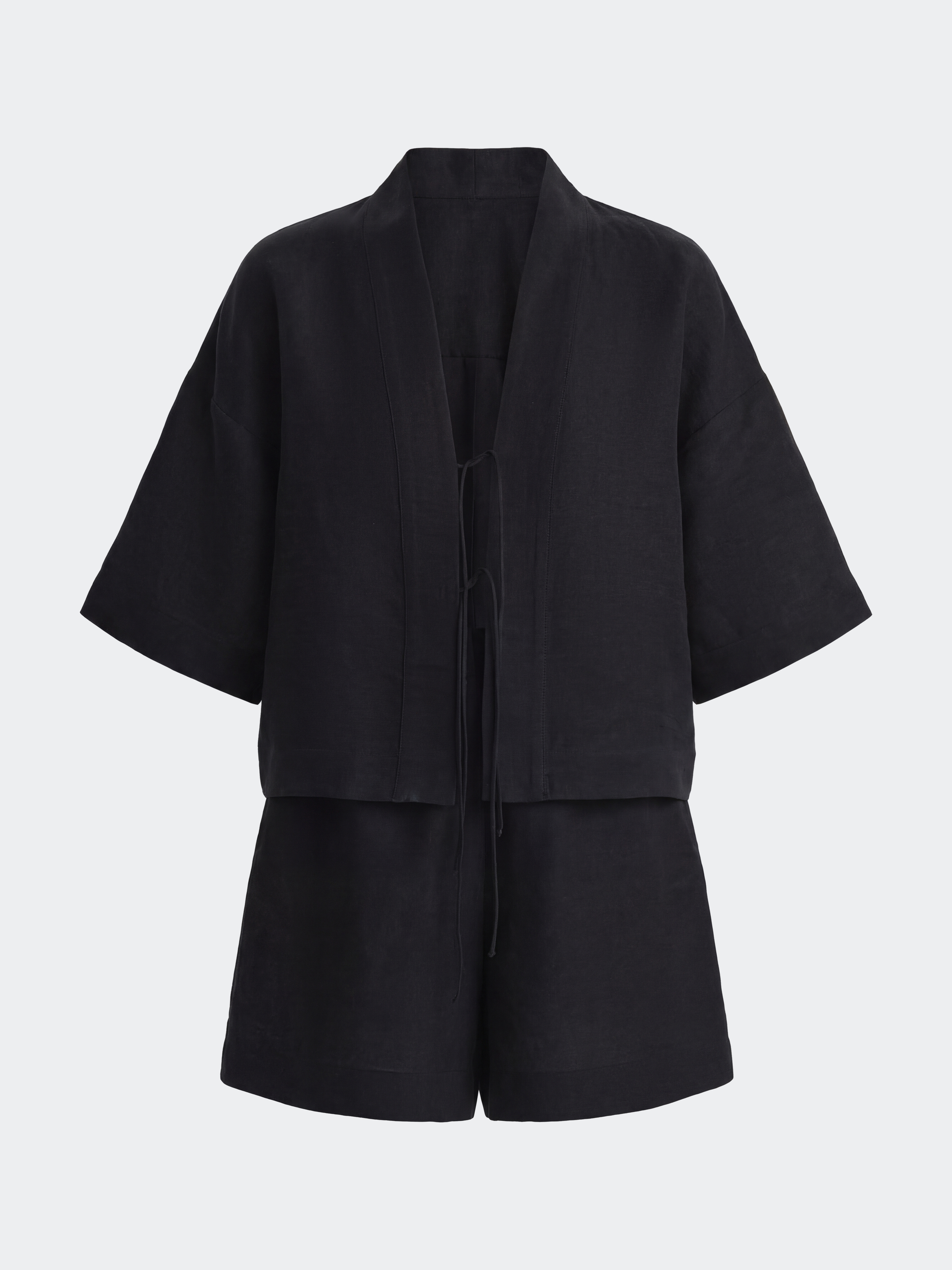 Костюм из рубашки и шорт станет актуальным решением на каждый день - носите их в комплекте или по отдельности. Тонкая ткань на основе льна идеальна для жаркого лета: она обладает дышащими свойствами и создает ощущение прохлады. Свободный крой, широкие рукава и резинка на талии обеспечивают комфортную посадку.