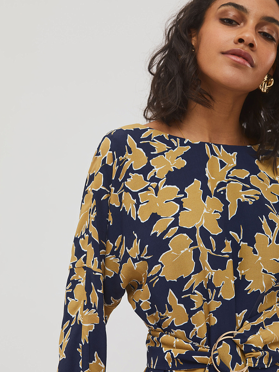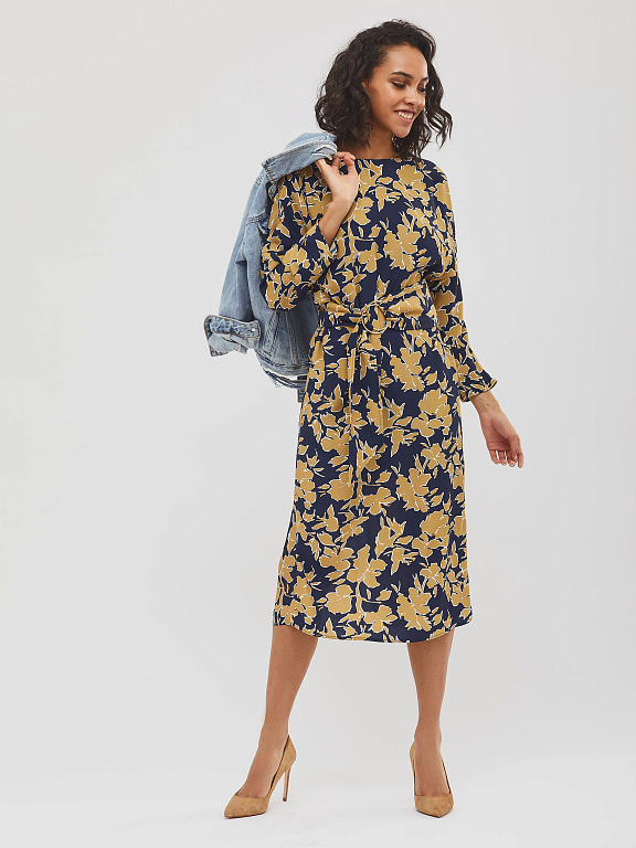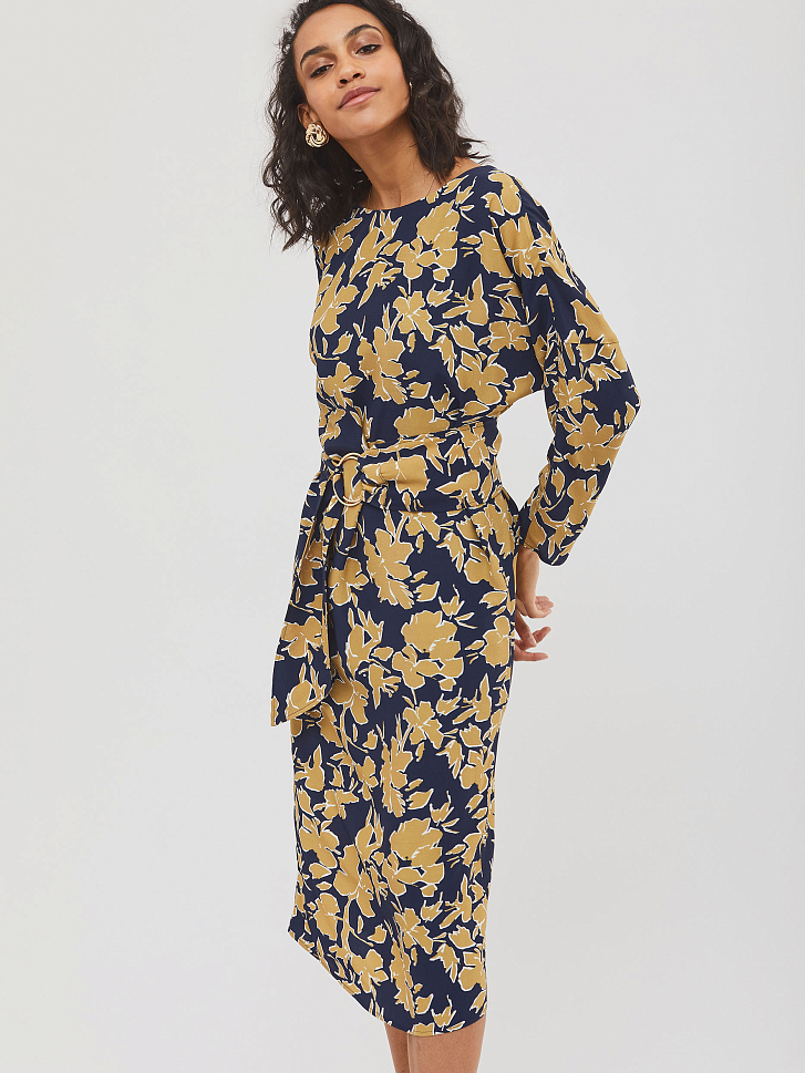 Платье с принтом и поясом