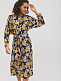 Платье из вискозы длины "миди" с принтом. Изделие со спущенной линией плеча и длинными рукавами. Вырез горловины "лодочка", широкий пояс на талии с металлическими кольцами. Сзади разрез. Изделие на подкладке. Рост модели 173 см, размер 42 (российский). Плотность ткани: 148 г/м2