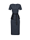 Платье из поливискозы в гусиную лапку. Облегающий силуэт, фигурный вырез, короткие рукава, шлица, подклад. Изделие застегивается на потайную молнию. В комплекте двусторонний пояс-баска с карманами.