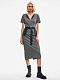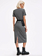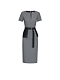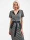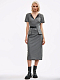 Платье из поливискозы в гусиную лапку. Облегающий силуэт, фигурный вырез, короткие рукава, шлица, подклад. Изделие застегивается на потайную молнию. В комплекте двусторонний пояс-баска с карманами.
