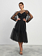 Платье-миди – лучший выбор для эффектного вечернего образа. Достоинство этой модели заключается в ее максимальной женственности, за которую отвечает струящийся полупрозрачный материал и аккуратный узор. Расклешенный силуэт и широкий пояс помогут подчеркнуть достоинства фигуры. В таком платье вы не останетесь незамеченной.