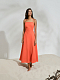 Летний сарафан добавит ярких красок в повседневный гардероб. Модель приталенного кроя с расклешенной юбкой сшили из плотного текстиля с хлопковым подкладом. Благодаря содержанию волокон льна и конопли он получился дышащим и комфортным для жаркой погоды. Тонкий шнурок на поясе придаст образу динамики.