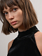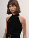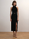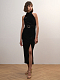 Элегантное вечернее платье подчеркивает изящность плеч и силуэта. Мягкий бархатный трикотаж хорошо тянется и облегает фигуру, а для удобной посадки продублирован гладкой подкладкой. Пояс шириной 9 см застегивается на крючки и дополнен съемной золотистой пряжкой.