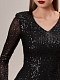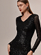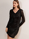 Короткое платье блестит эффектно и задает настроение всего вечернего образа. Модель облегающего кроя сшили из эластичной сетки и продублировали капроновой подкладкой, чтобы снизить колкость пайеток, а благодаря подплечникам изделие не потеряет форму со временем.
