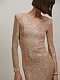 Короткое платье блестит эффектно и задает настроение всего вечернего образа. Модель облегающего кроя сшили из эластичной сетки и продублировали капроновой подкладкой, чтобы снизить колкость пайеток, а благодаря подплечникам изделие не потеряет форму со временем.