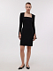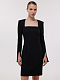 Короткое платье с вырезом каре подойдёт как для повседневных образов, так и для особого случая. Плотный текстиль из поливискозы не тянется и облегает силуэт. Геометричность кроя дополнительно подчеркнута разрезами на манжетах и акцентными плечами.