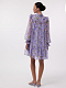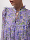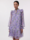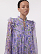 Шифоновое платье с цветочным принтом создает легкий нежный образ, а воланы на плечах добавляют воздушности. Платье длины миди без застежки продублировано мягкой подкладкой из вискозы. Воротник-стойка на завязках позволяет регулировать форму выреза.