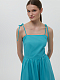 Короткий сарафан с расклешенной юбкой без подкладки – лучший вариант на летний сезон. Тонкий поплин из натурального хлопка хорошо пропускает воздух и позволяет коже дышать. Полуоткрытая спина и бретели регулируются завязками, подчеркивая изящные плечи.