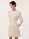Короткое платье-футляр выстраивает безупречный силуэт, подчеркнутый подплечниками. Плотный текстиль не тянется и хорошо держит форму, а гладкая подкладка обеспечивает комфортное прилегание. Материал на треть состоит из переработанного полиэстера, что позволяет более ответственно подходить к употреблению ресурсов планеты.