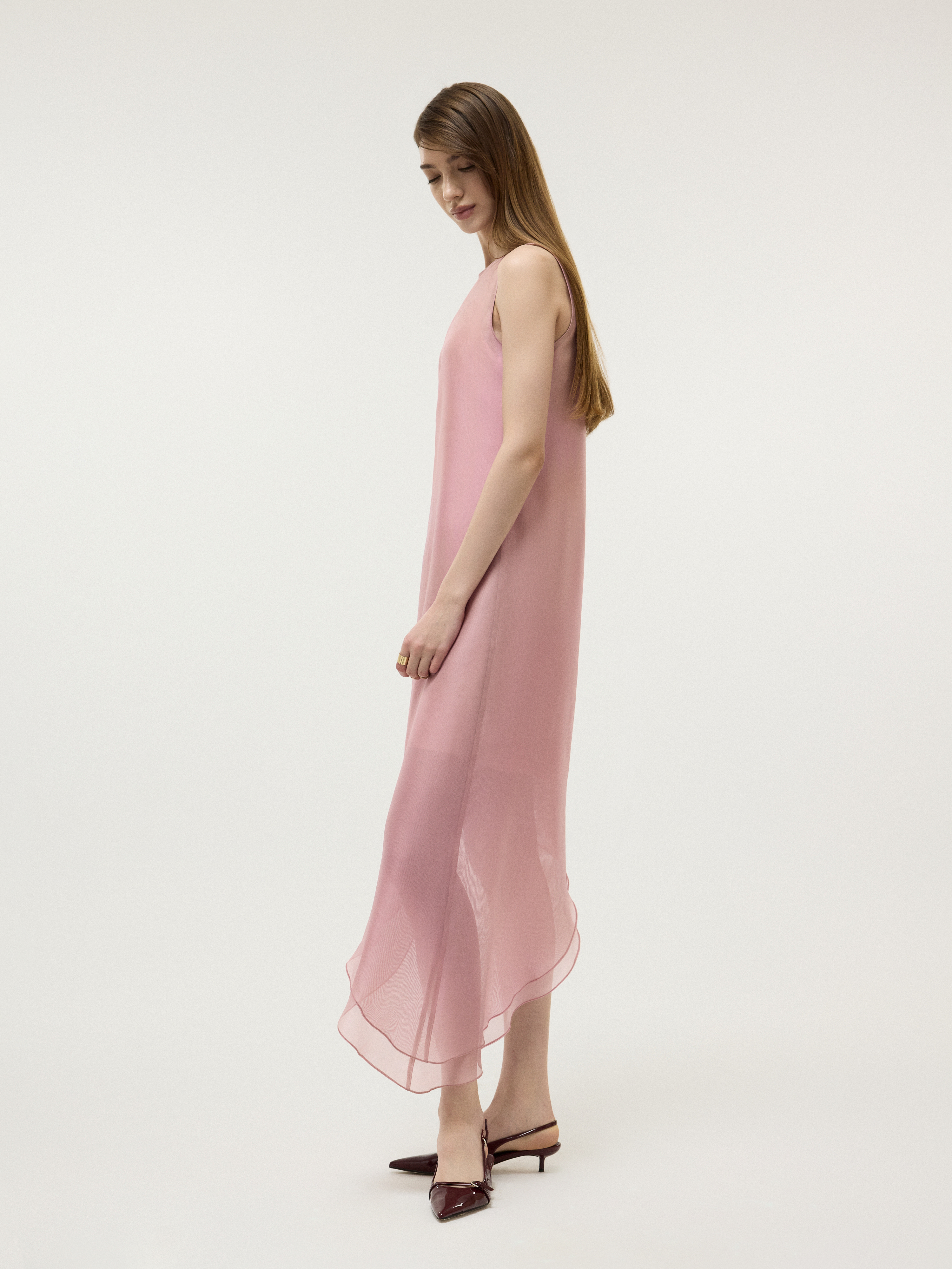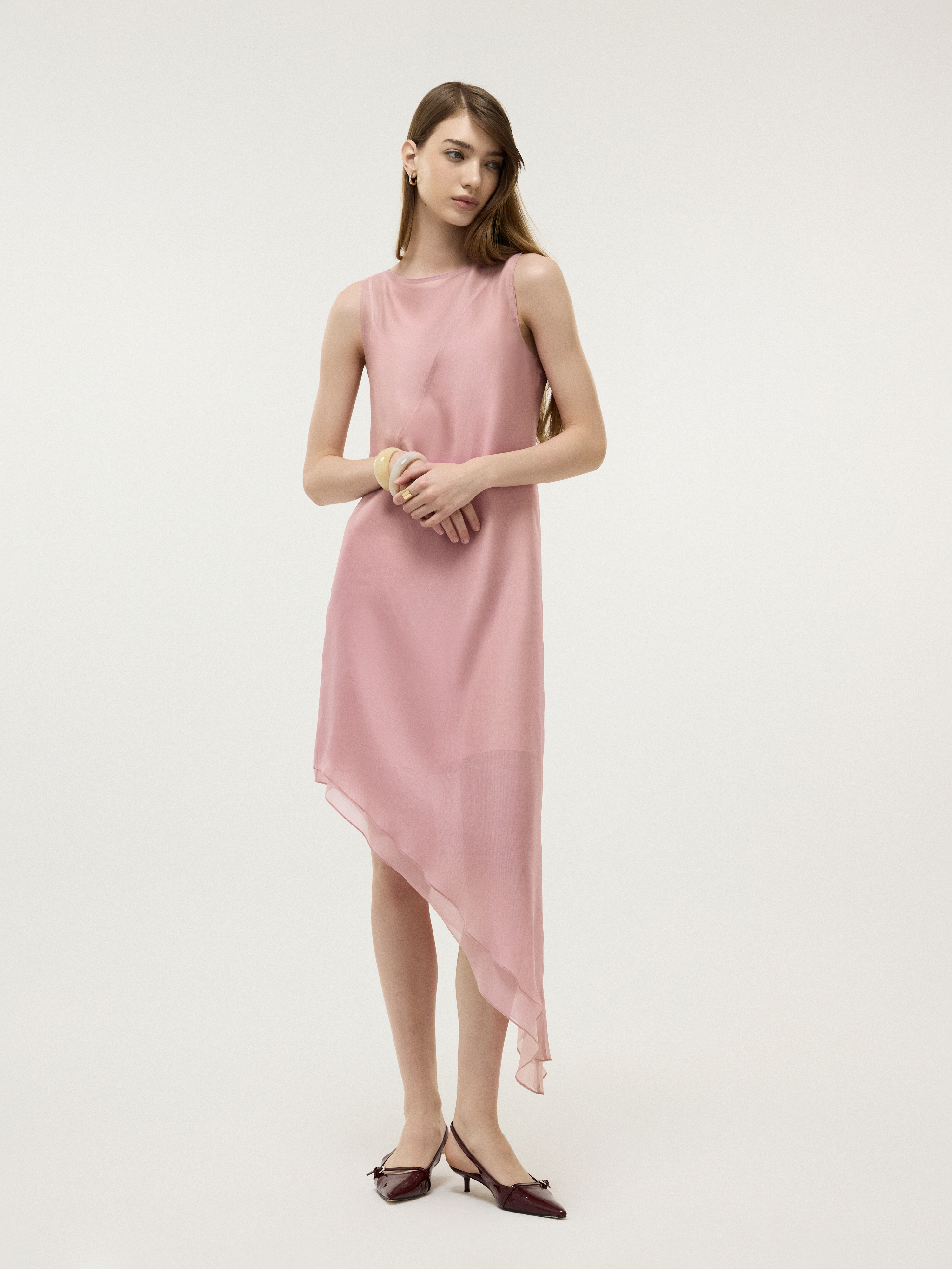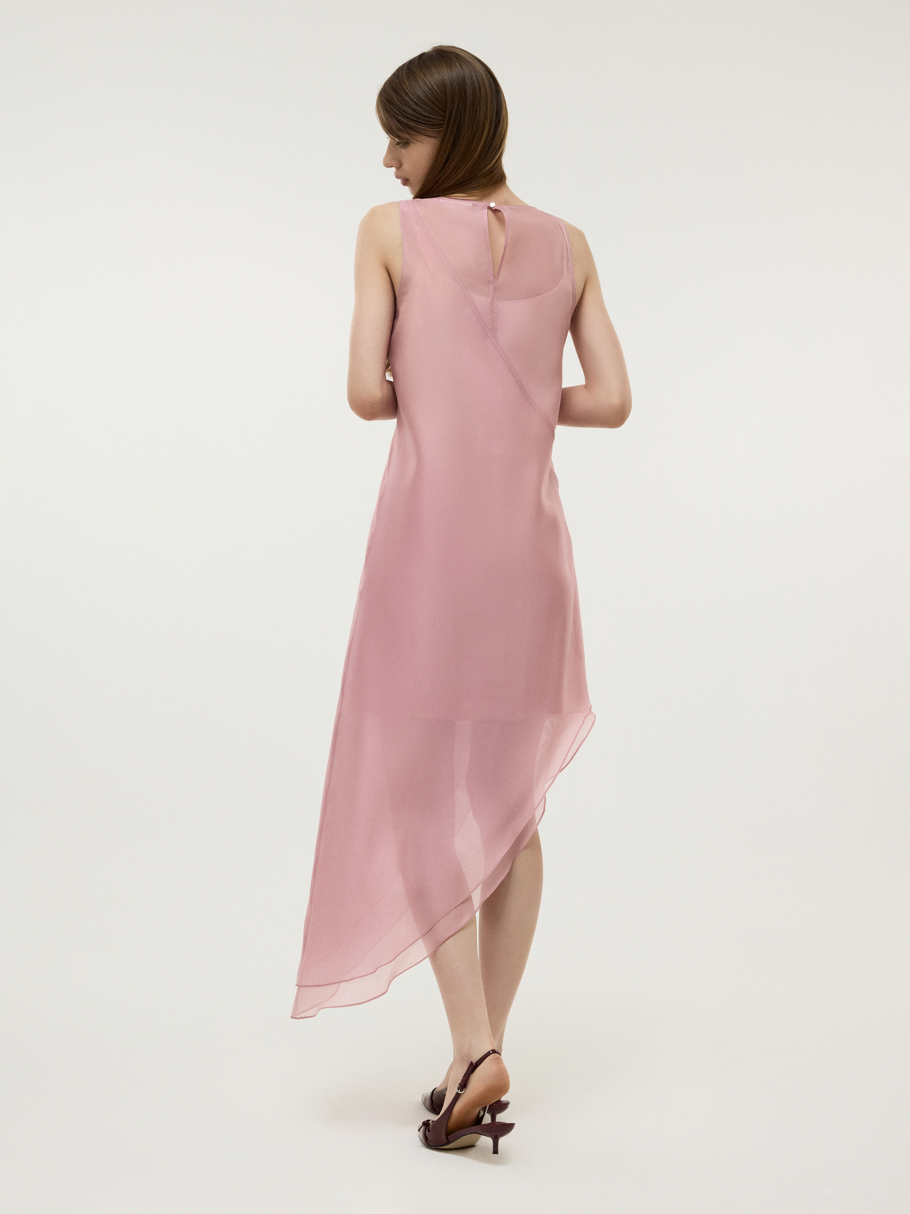 Платье из органзы – для неповторимых стилистических решений. Эстетичная прозрачность – один из ключевых трендов сезона, а асимметрия создает необходимый акцент. Воздушный текстиль придает легкости, нижнюю комбинацию из шелковистого крепа можно носить отдельно.