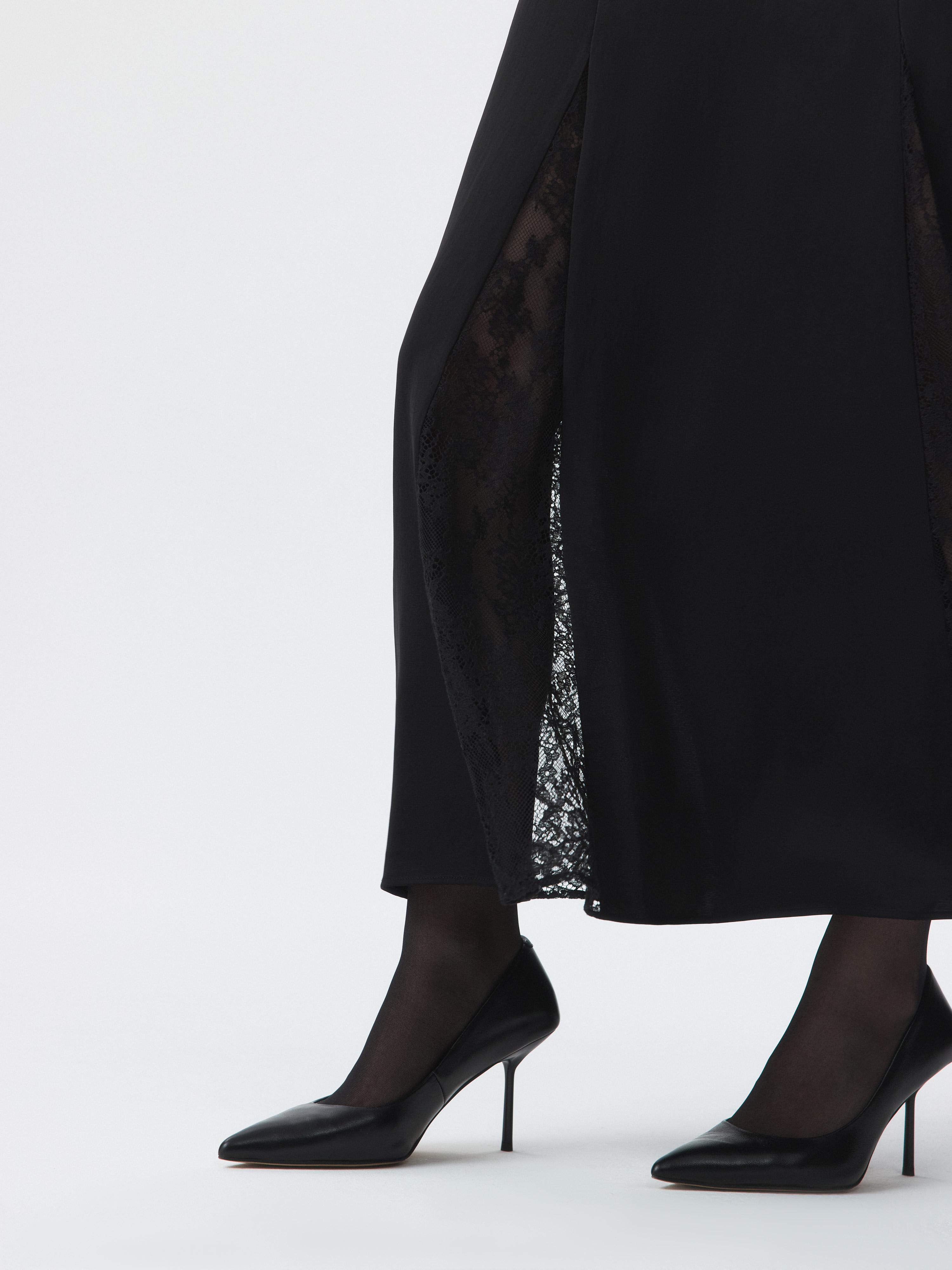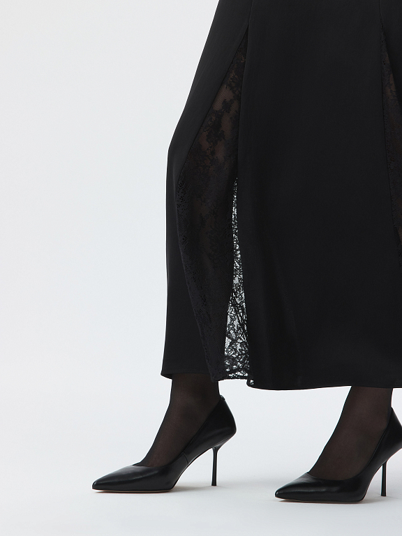 Лаконичность линий и утонченность деталей делают это платье-годе идеальным выбором для разных случаев. Атласный текстиль не тянется и не мнется, а кружевные вставки на юбке при каждом шаге подчеркнут нестандартный крой.