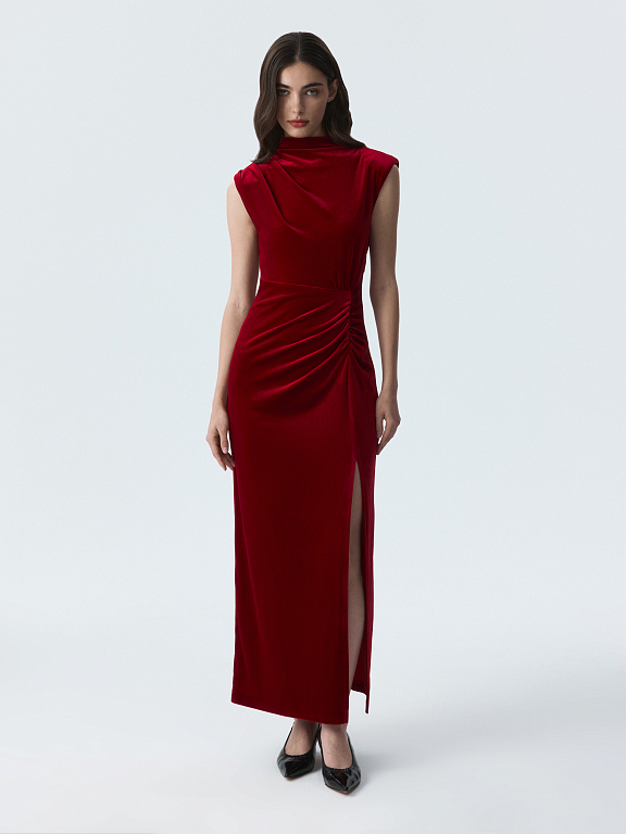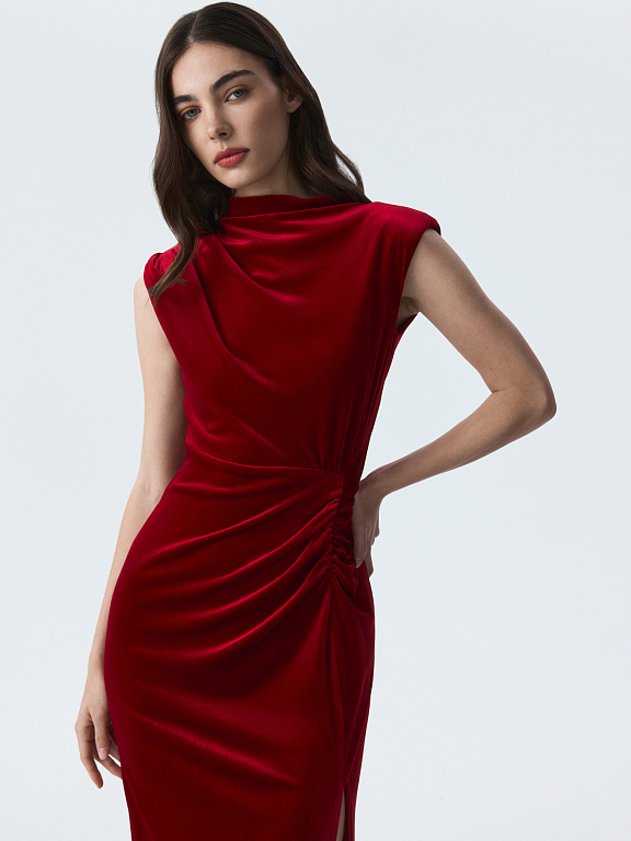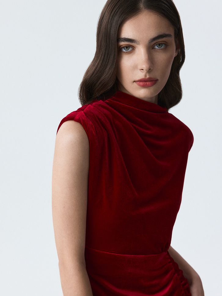 Бархатное платье с драпировками