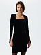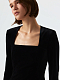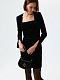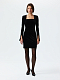 Короткое платье с вырезом каре подойдёт как для особого случая, так и вечерних мероприятий. Бархатистый текстиль слегка тянется и комфортно облегает силуэт. Геометричность кроя дополнительно подчеркнута разрезами на манжетах и подплечниками.