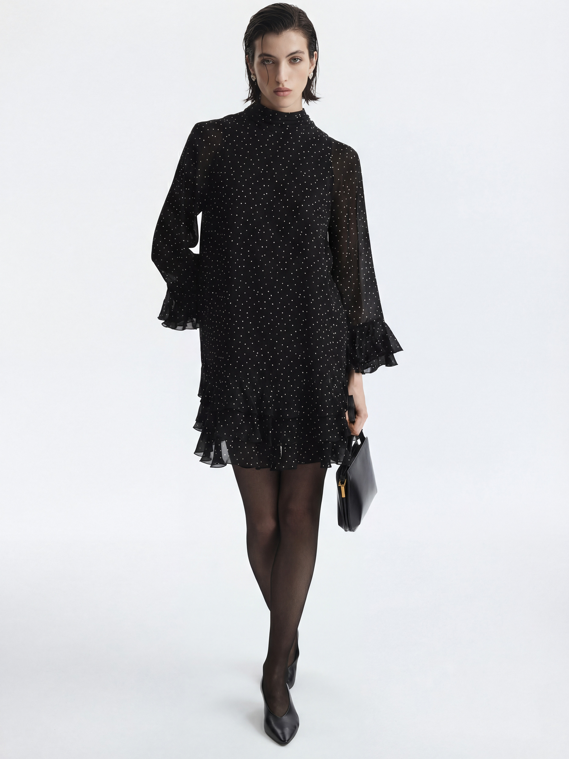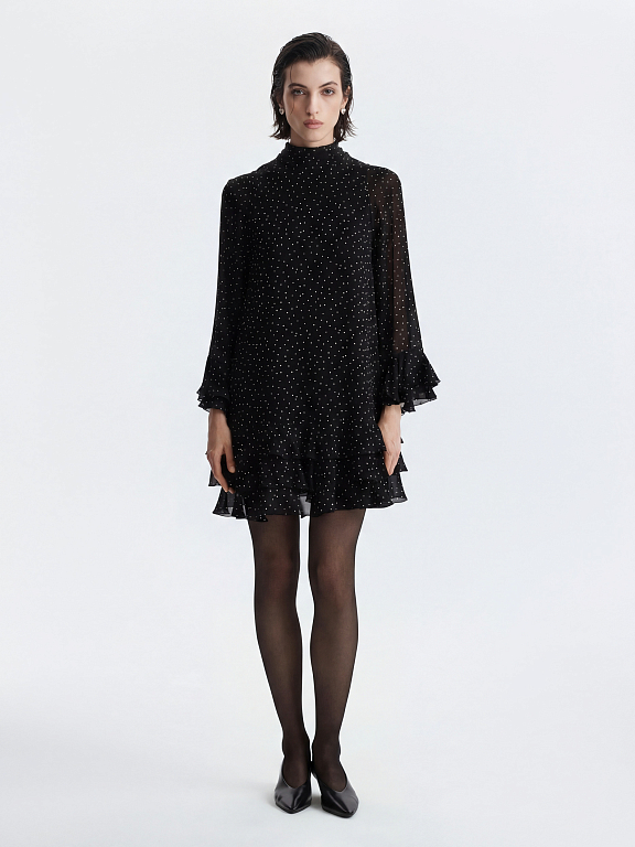 Платье с романтичным принтом в сердечки легко адаптируется под любой повод. Легкий воздушный текстиль струится при каждом шаге, а чтобы полупрозрачная ткань не просвечивала, снизу предусмотрели комфортную подкладку.