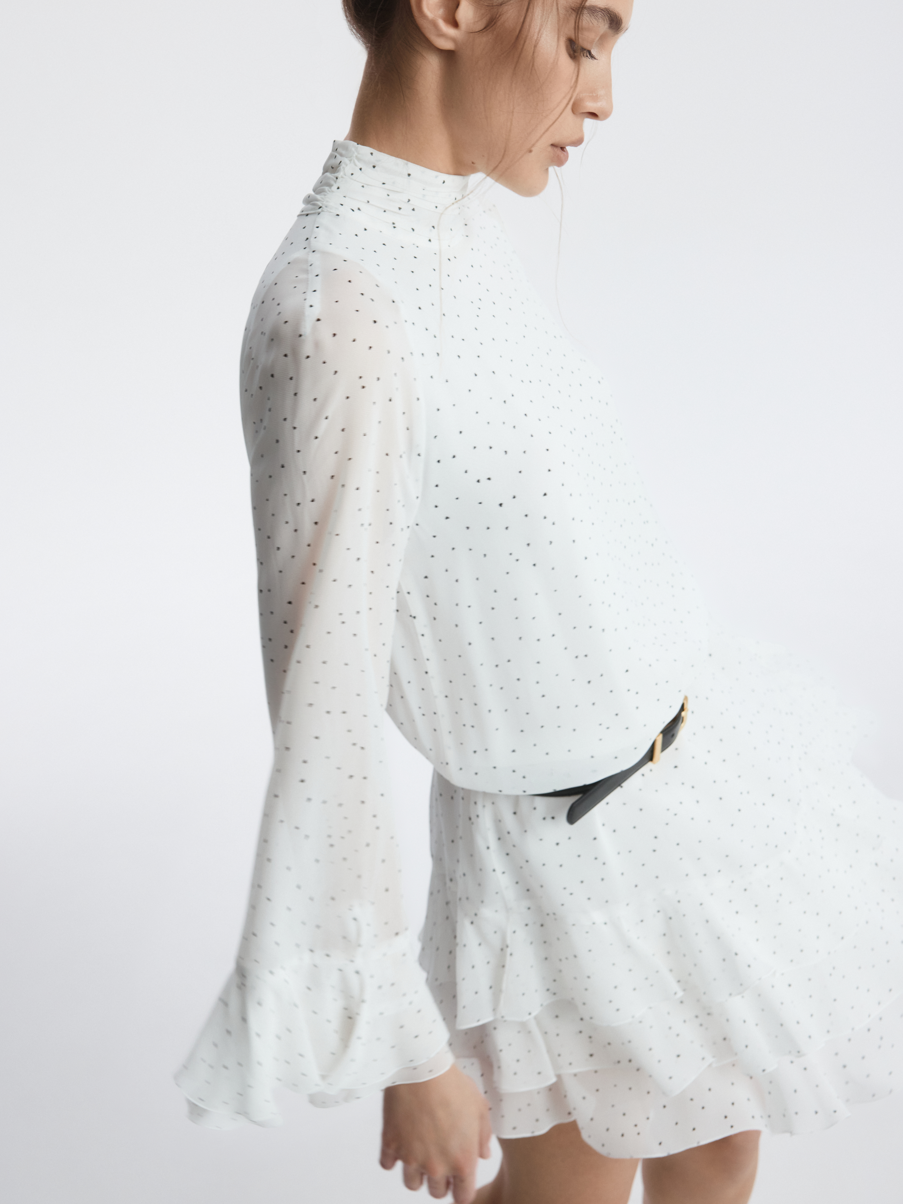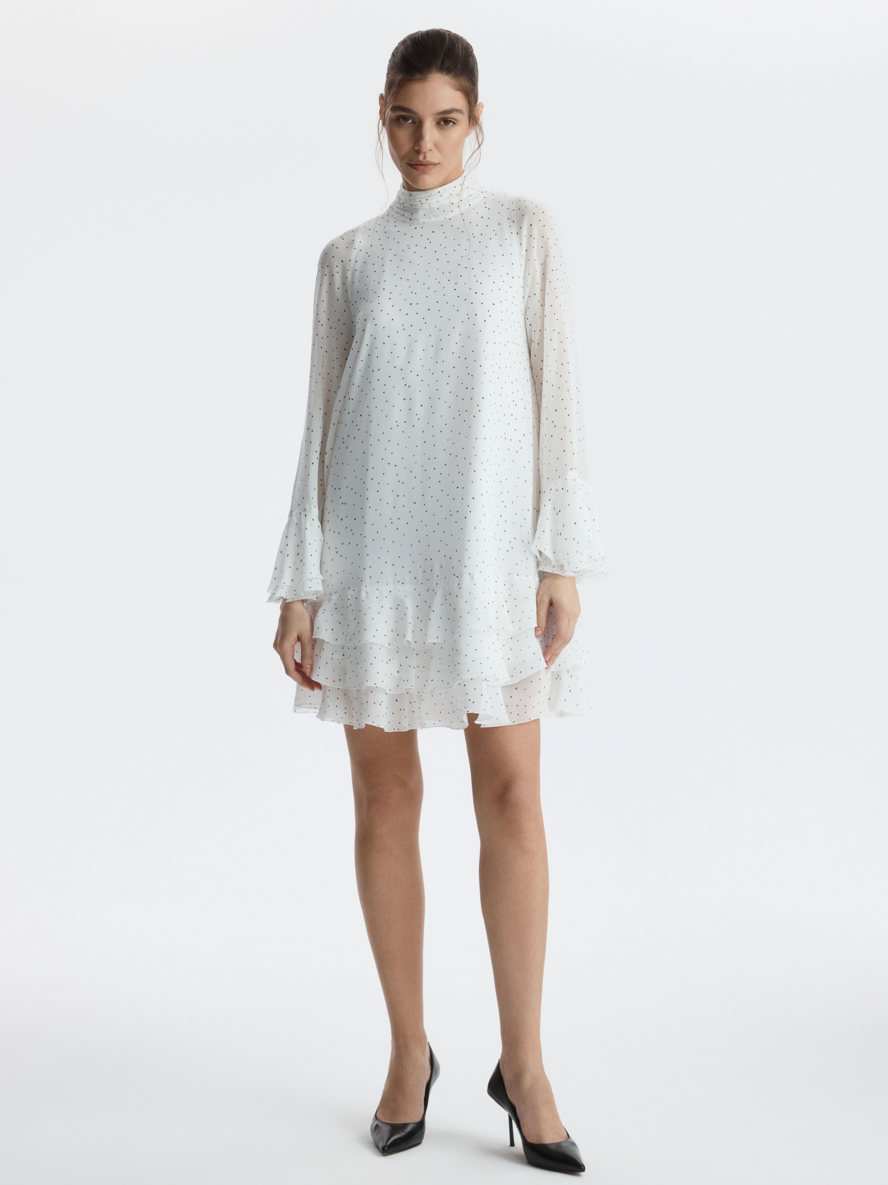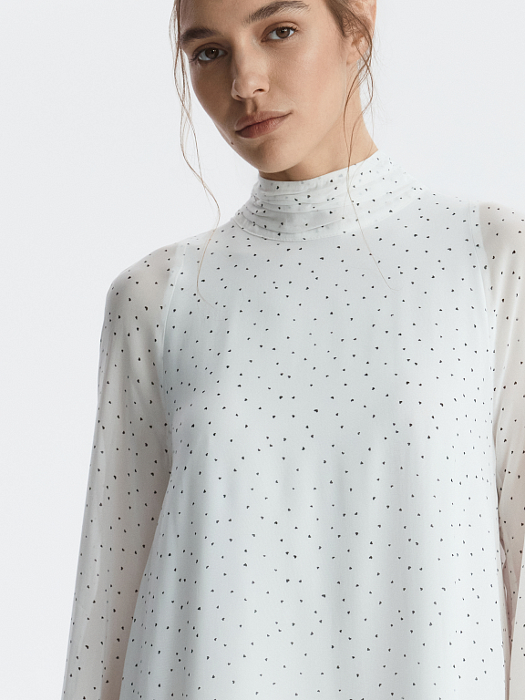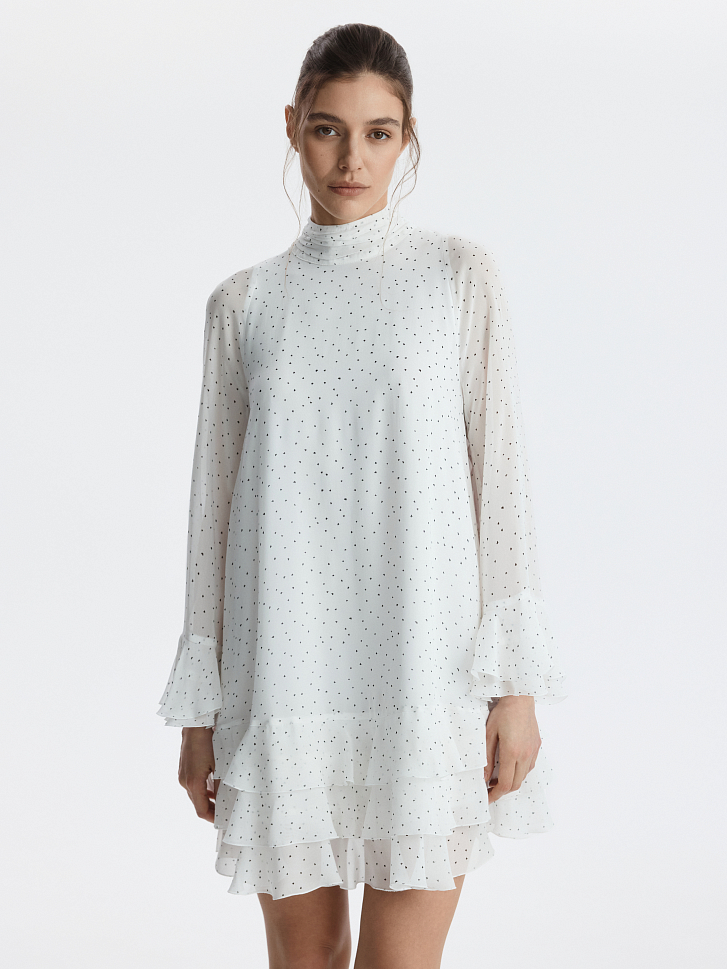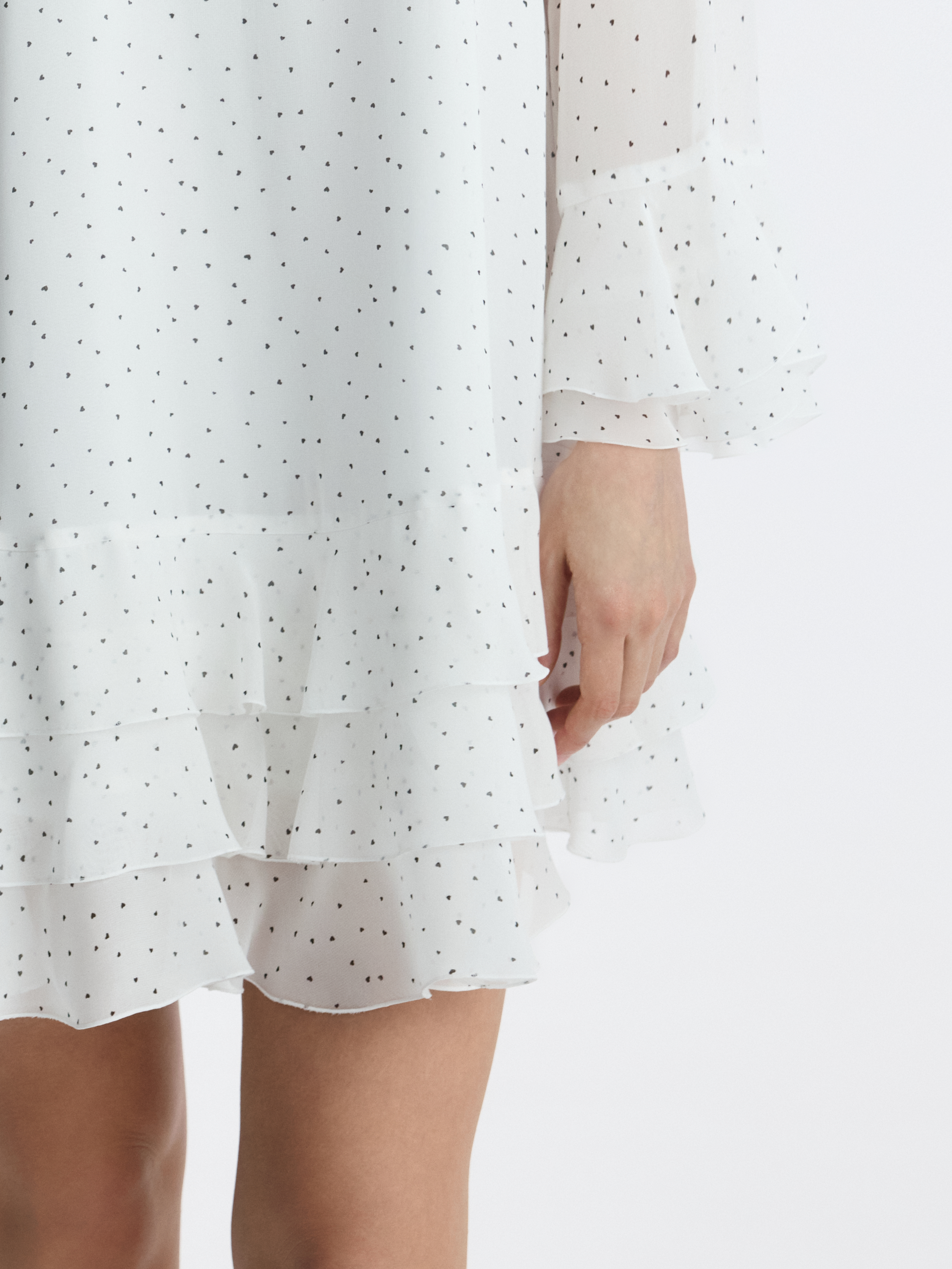 Платье с романтичным принтом в сердечки легко адаптируется под любой повод. Легкий воздушный текстиль струится при каждом шаге, а чтобы полупрозрачная ткань не просвечивала, снизу предусмотрели комфортную подкладку.