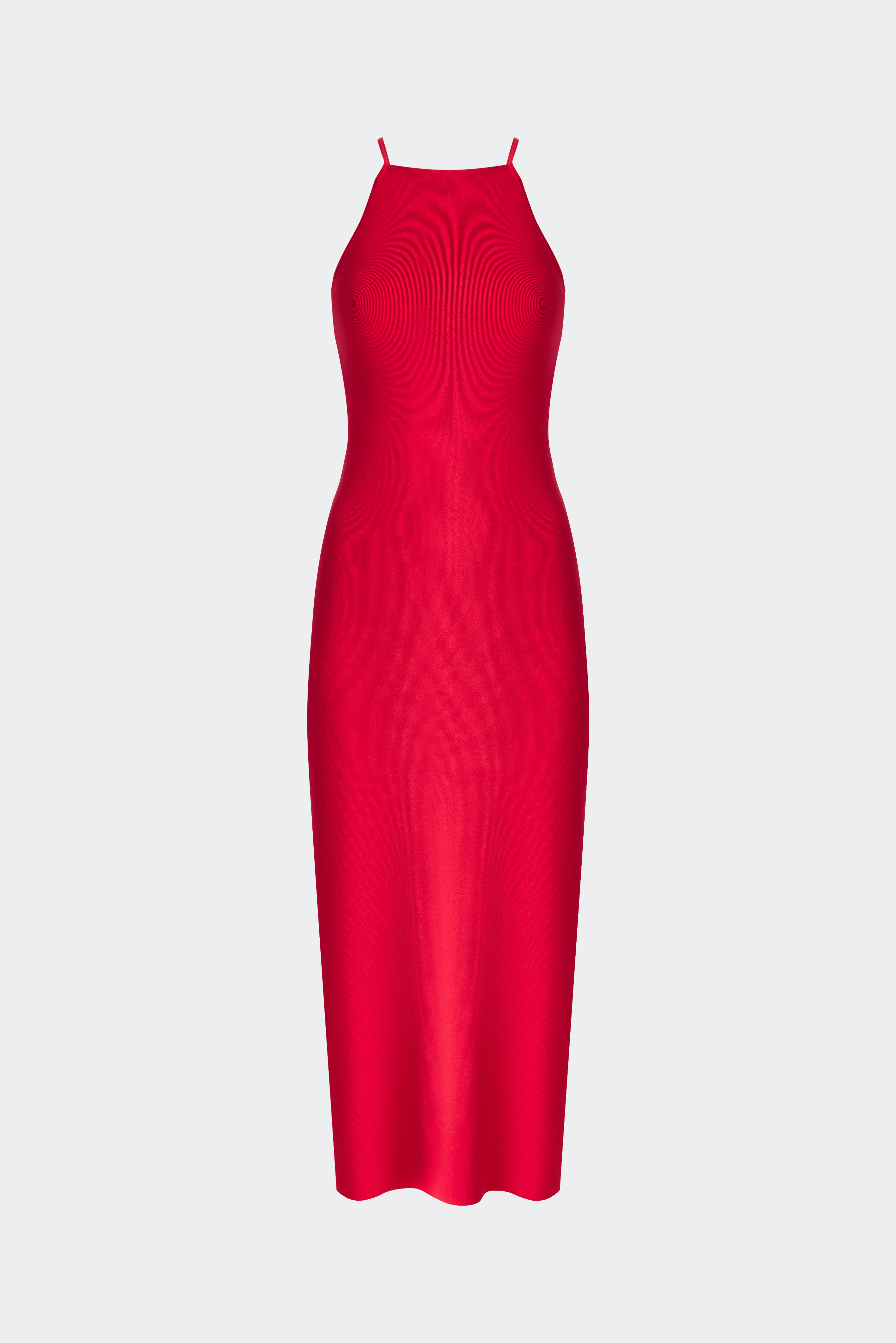 Облегающее платье в длине миди станет фаворитом для создания женственных повседневных образов. В меру плотный гладкий трикотаж мягко прилегает к телу и не просвечивает даже без подкладки, а благодаря эластичным волокнам хорошо тянется и не сковывает шаг.