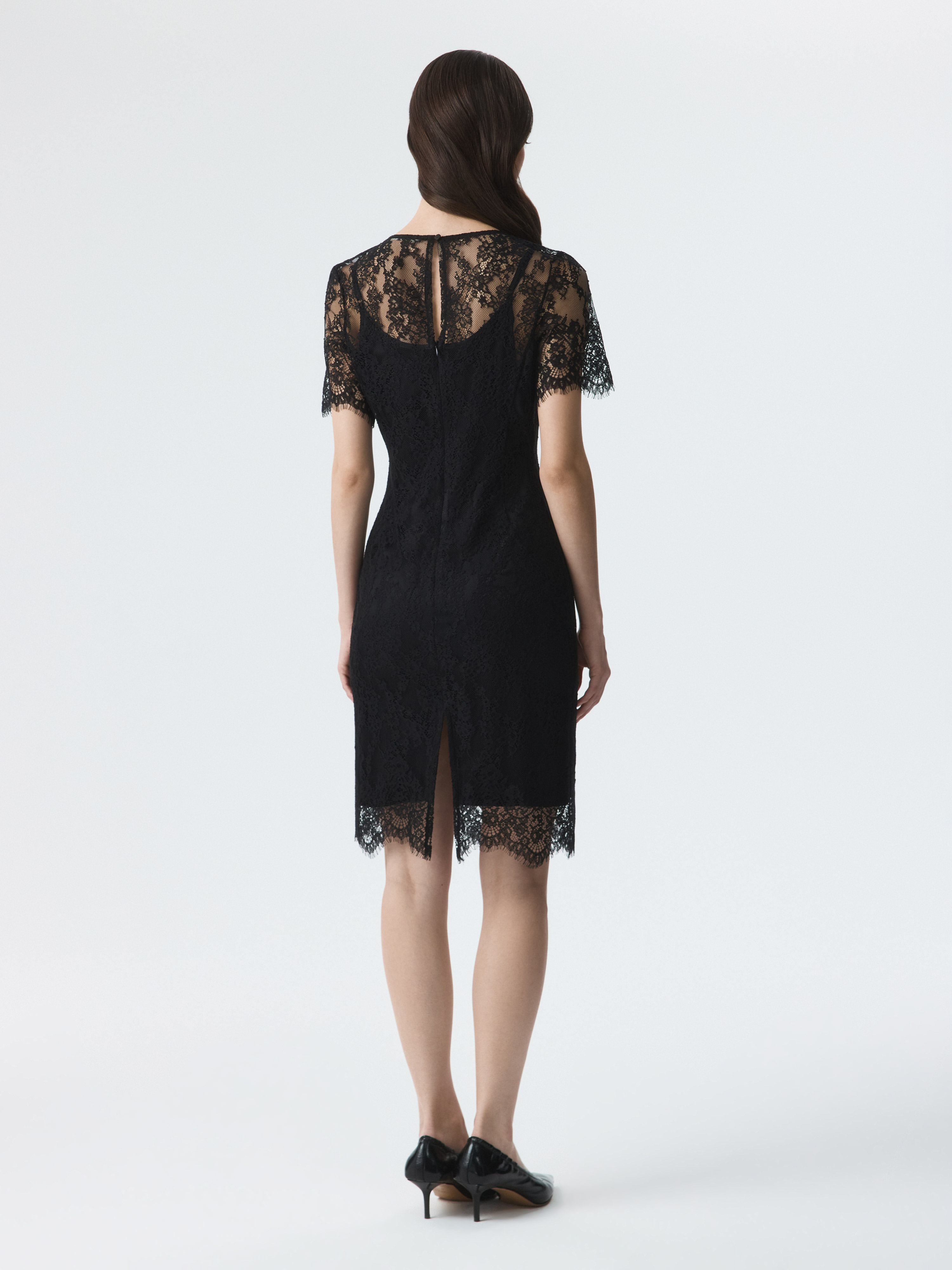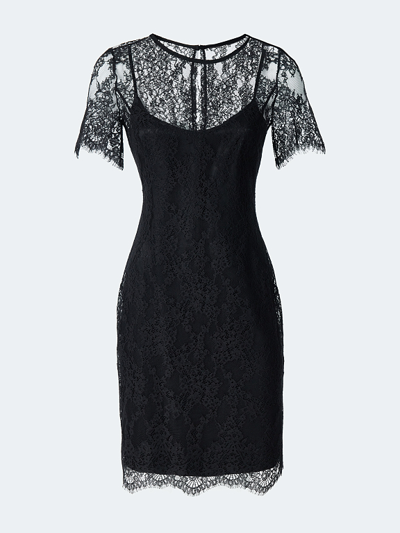 Кружевное платье идеально подойдет для коктейльных вечеринок и выходов в свет. Полупрозрачная ткань на основе хлопка создает женственный образ, а подкладка предотвращает просвечивание. Облегающий крой подчеркивает силуэт, а шлица сзади не ограничивает свободу шага.