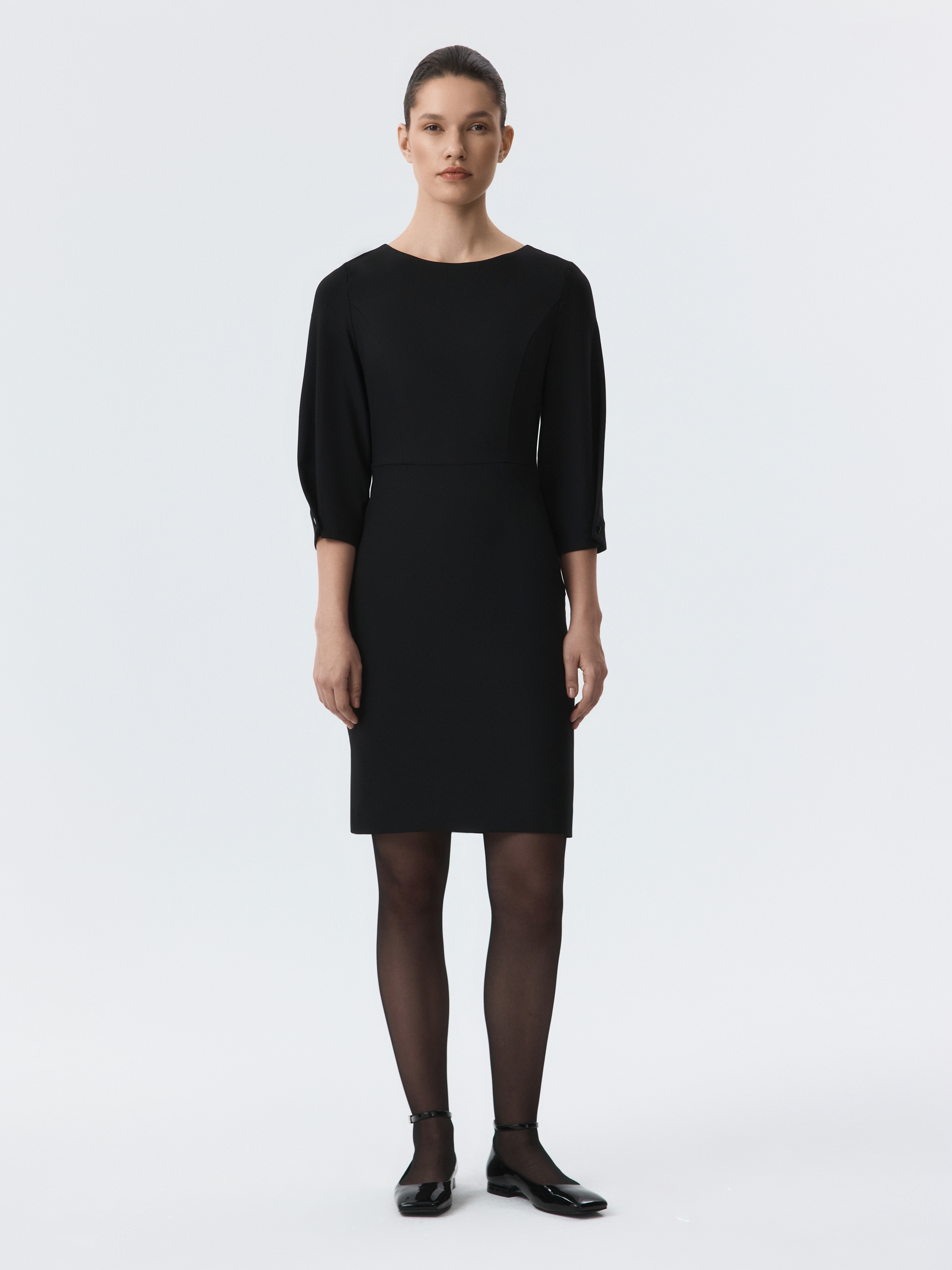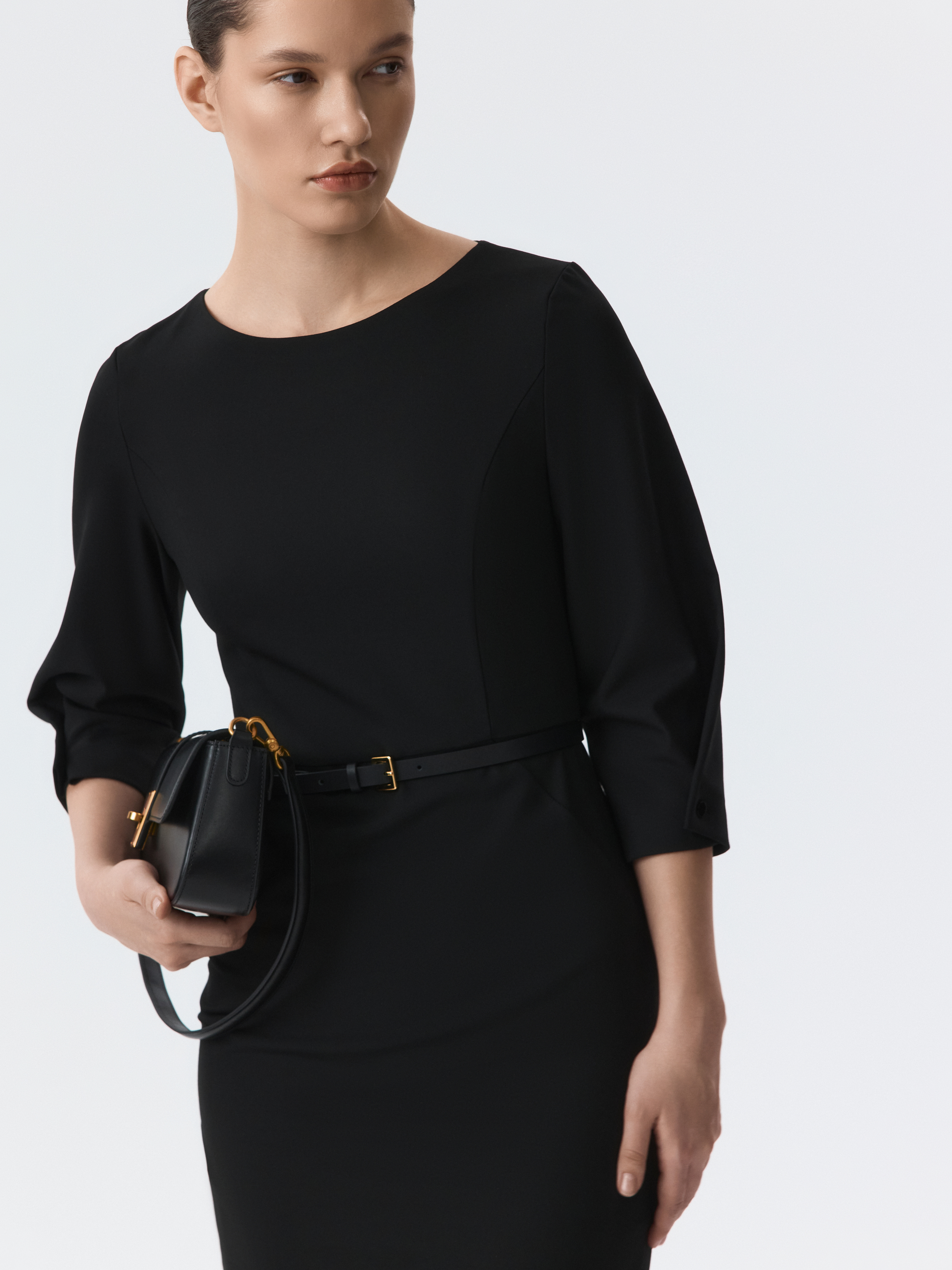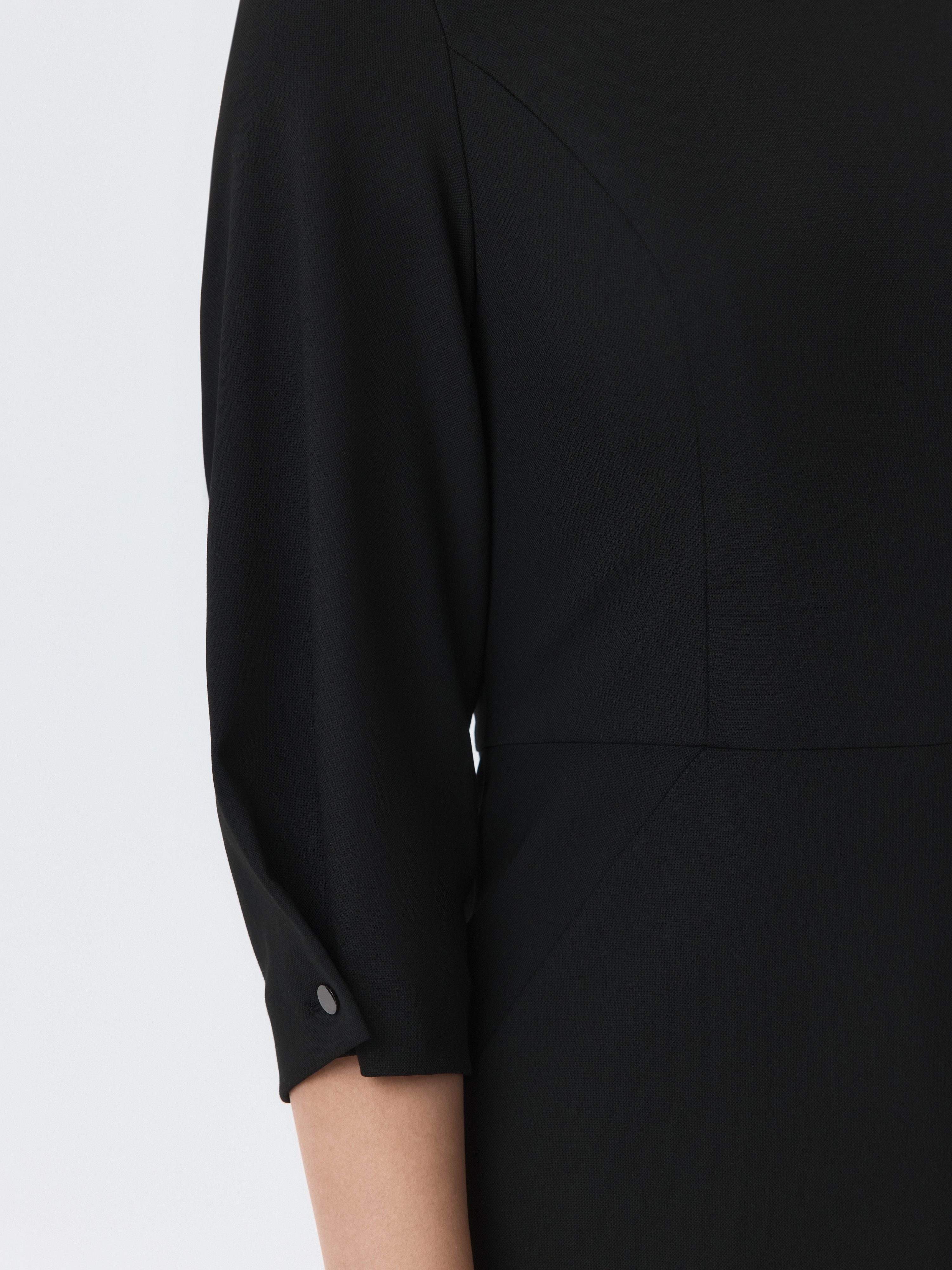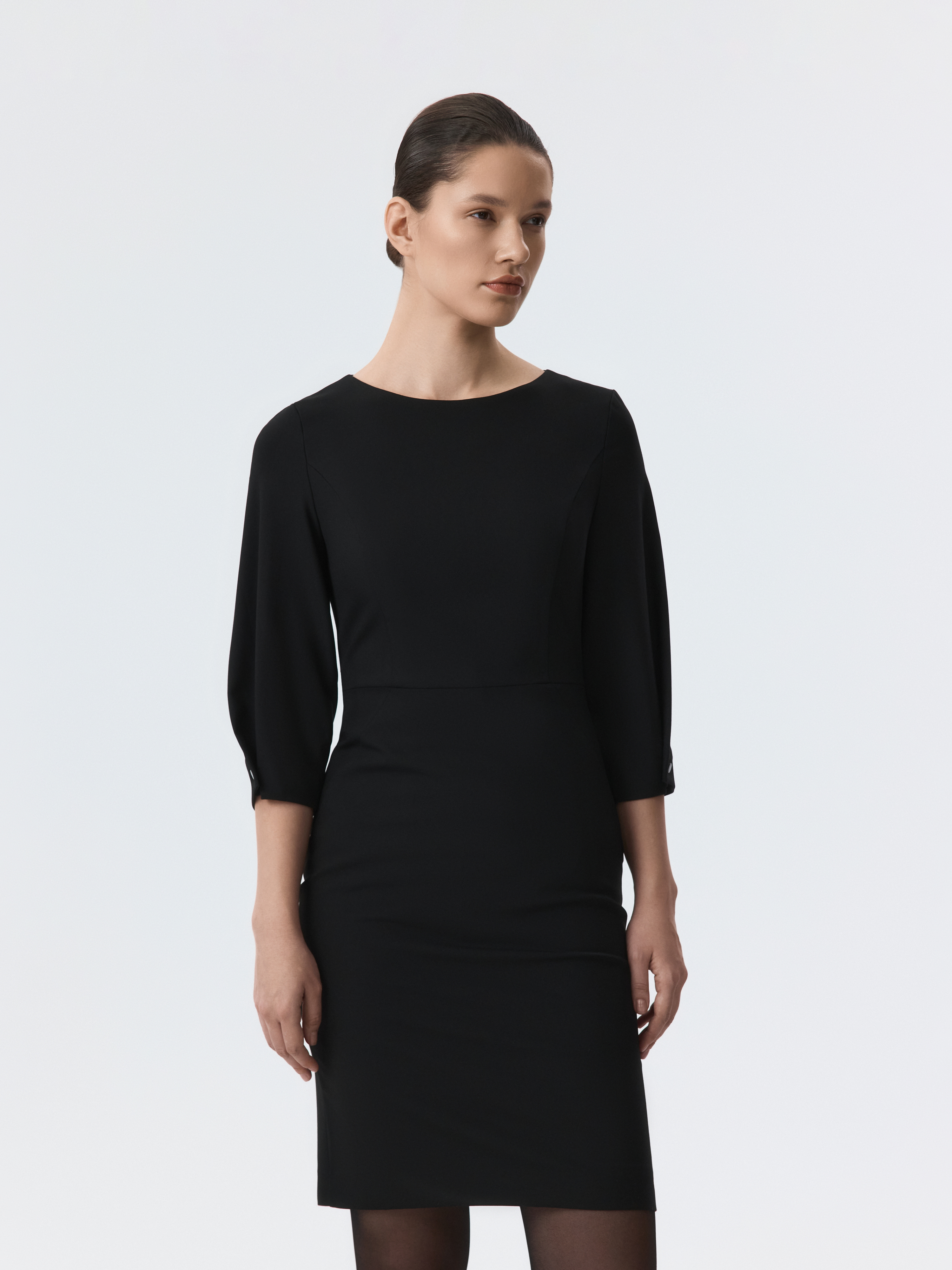Платье-миди силуэта футляр откроет новые сценарии для базового гардероба. Плотный костюмный текстиль из поливикозы не тянется и комфортно прилегает благодаря гладкой подкладке. Приталенный крой и рукава до локтя подчеркивают женственный силуэт.