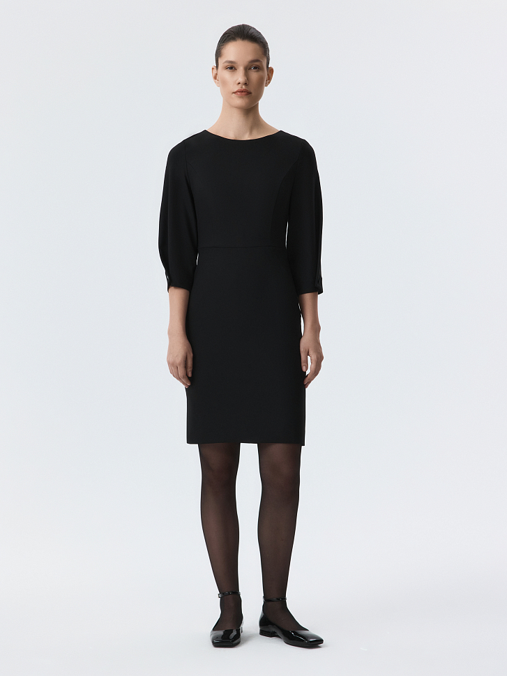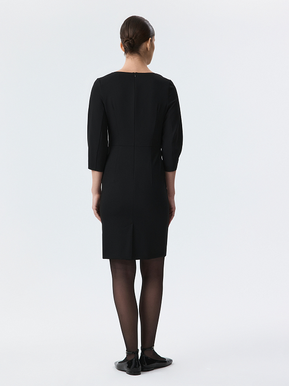 Платье-миди с рукавами ¾ – современный взгляд на проверенную классику. Плотный костюмный текстиль из поливикозы не тянется и комфортно прилегает благодаря гладкой подкладке. Лаконичный дизайн позволяет вписать платье в офисный или вечерний гардероб.