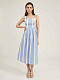 Сарафан длины миди, выполненный из хлопка с добавлением металлизированной нити. Приталенный крой, широкие бретели, подкладка.