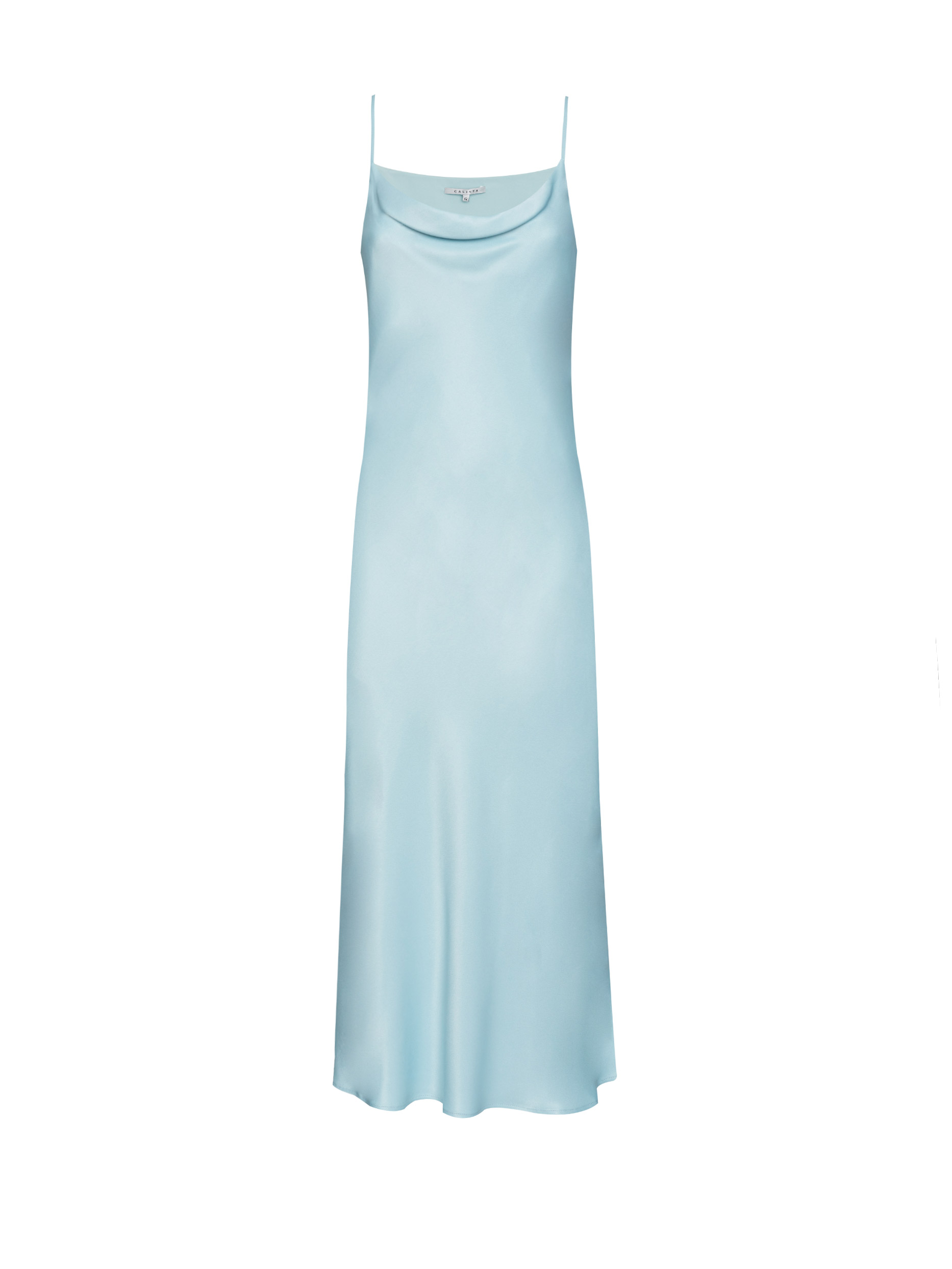 Однотонная комбинация длины миди из струящейся ткани. Приталенный силуэт, тонкие бретели, вырез с драпировкой, подклад.