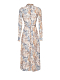 Платье миди из мягкой вискозы с принтом. Приталенный силуэт, классический отложной воротник, рукава с манжетами на пуговицах, подклад в нижней части. В комплекте пояс.