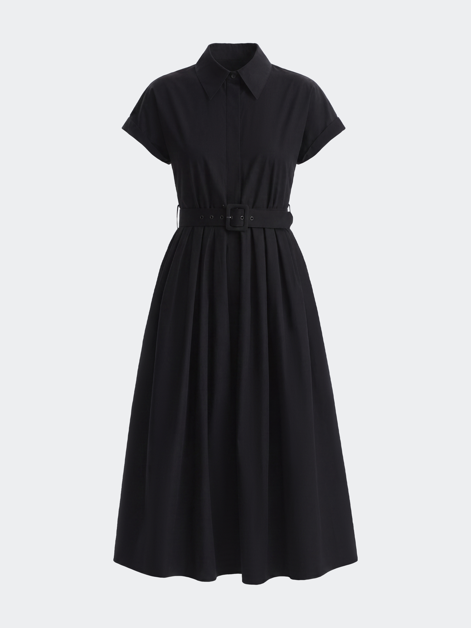 Платье-миди в стили рубашки подойдет для образов в офис или повседневных летних планов. Легкий дышащий текстиль из натурального хлопка комфортно прилегает к телу и не просвечивает даже без подкладки. Боковые карманы и ремень – функциональные детали.