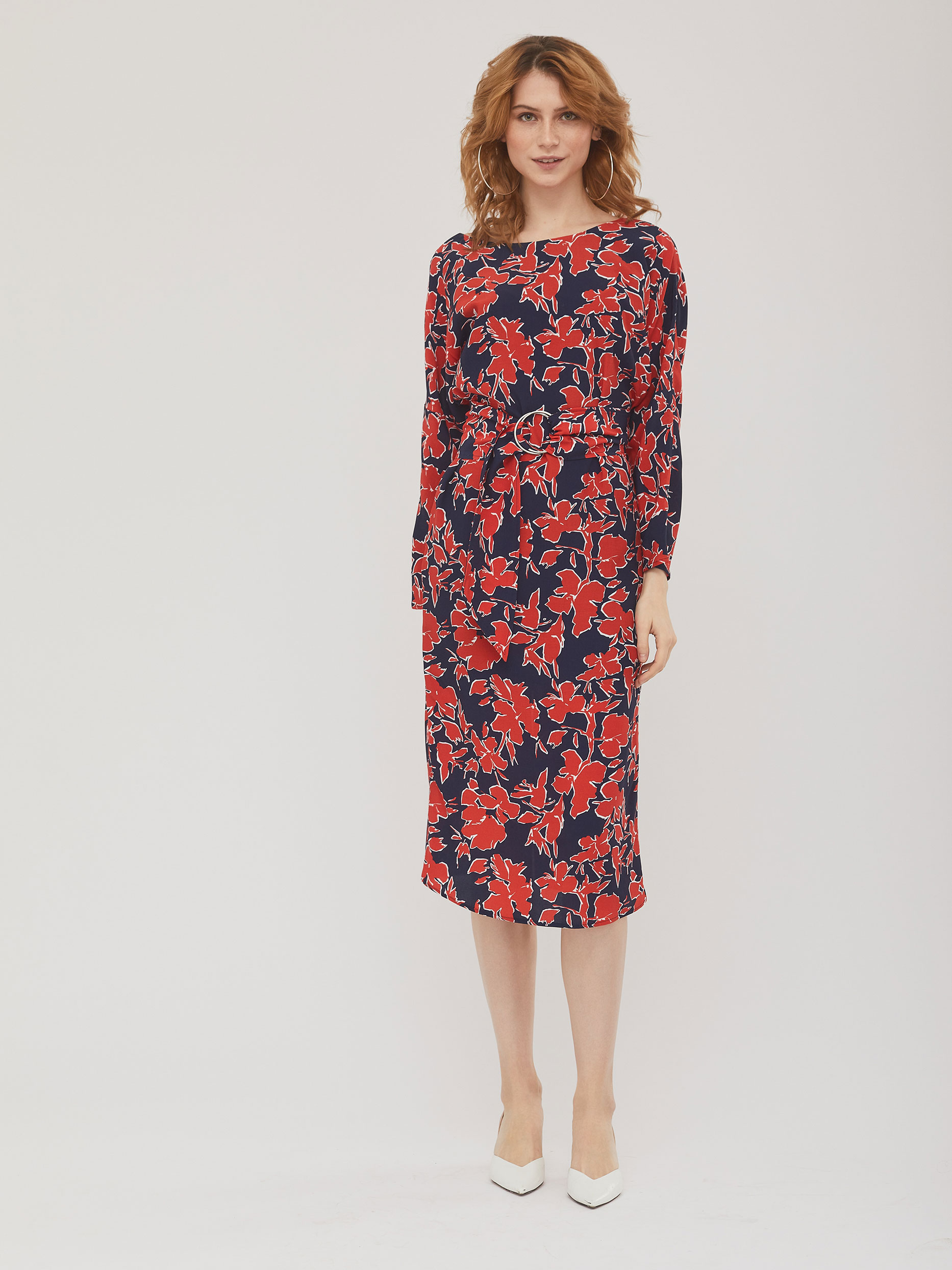 Платье с принтом и поясом