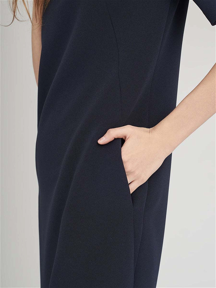 Однотонное платье. Прямой силуэт, круглый вырез, съемный воротник, шлица, подклад.