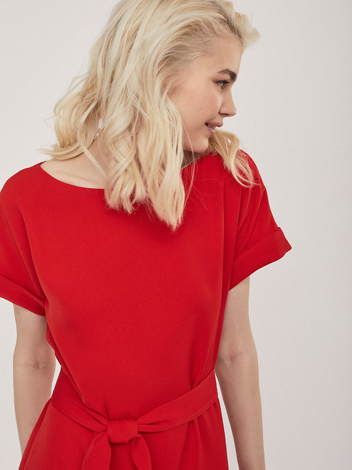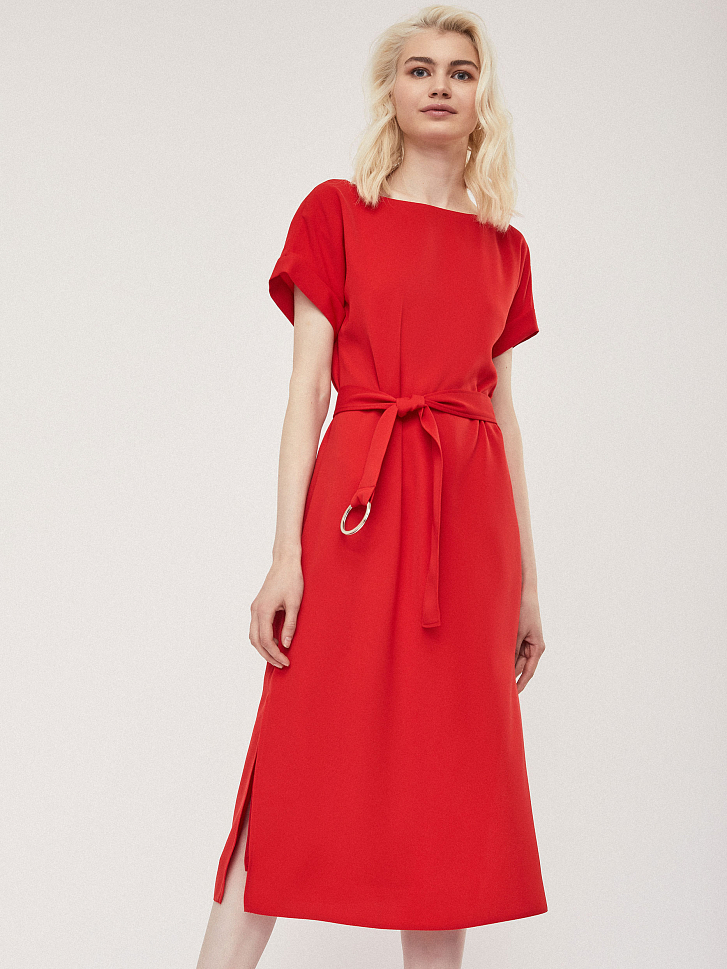 Платье свободного силуэта с поясом