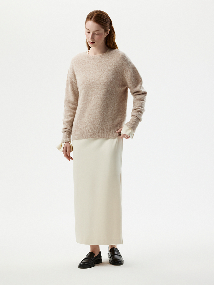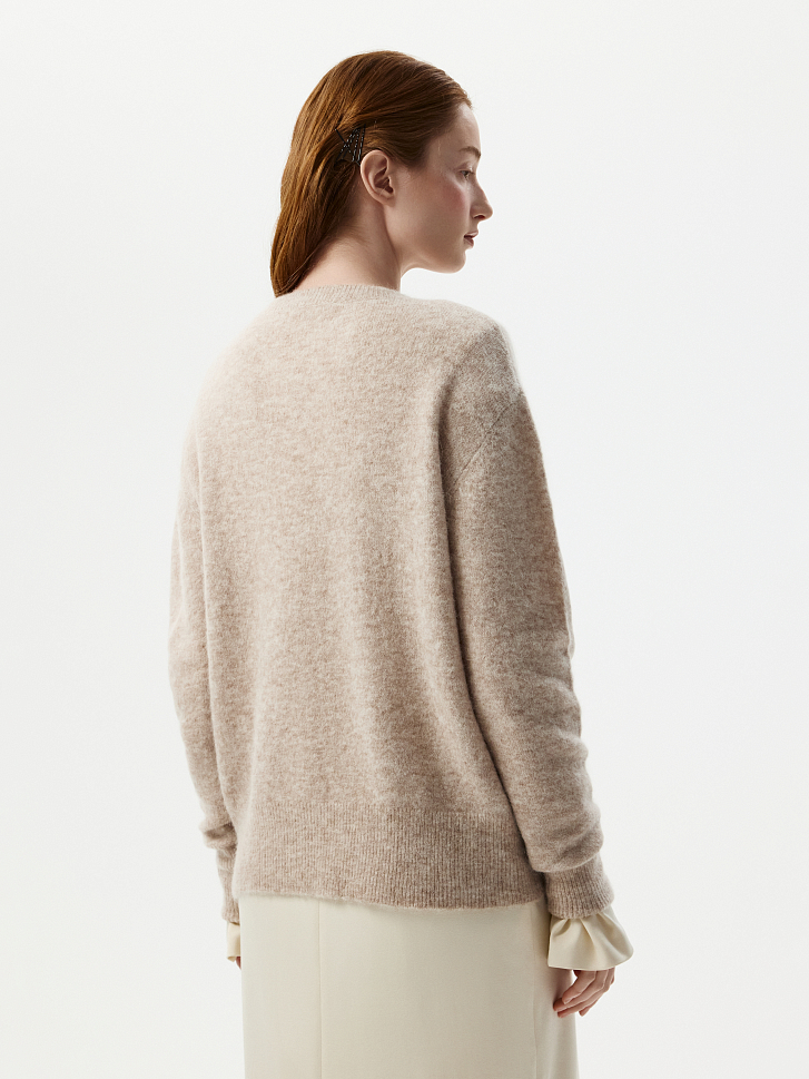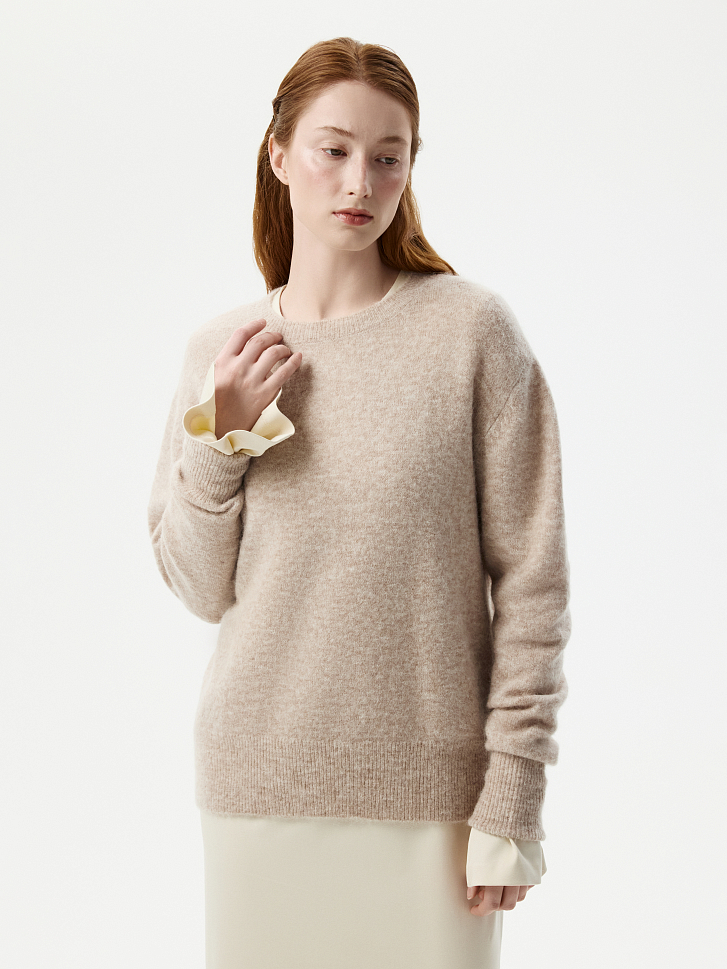 Теплый джемпер выручит в прохладные дни. Пушистая пряжа содержит шерсть сури альпака, которая отличается длинными гладкими волосками. Это делает джемпер мягким на ощупь и не колючим, благодаря овечьей шерсти он надежно согревает, а эластичные волокна придают прочности и упругости.