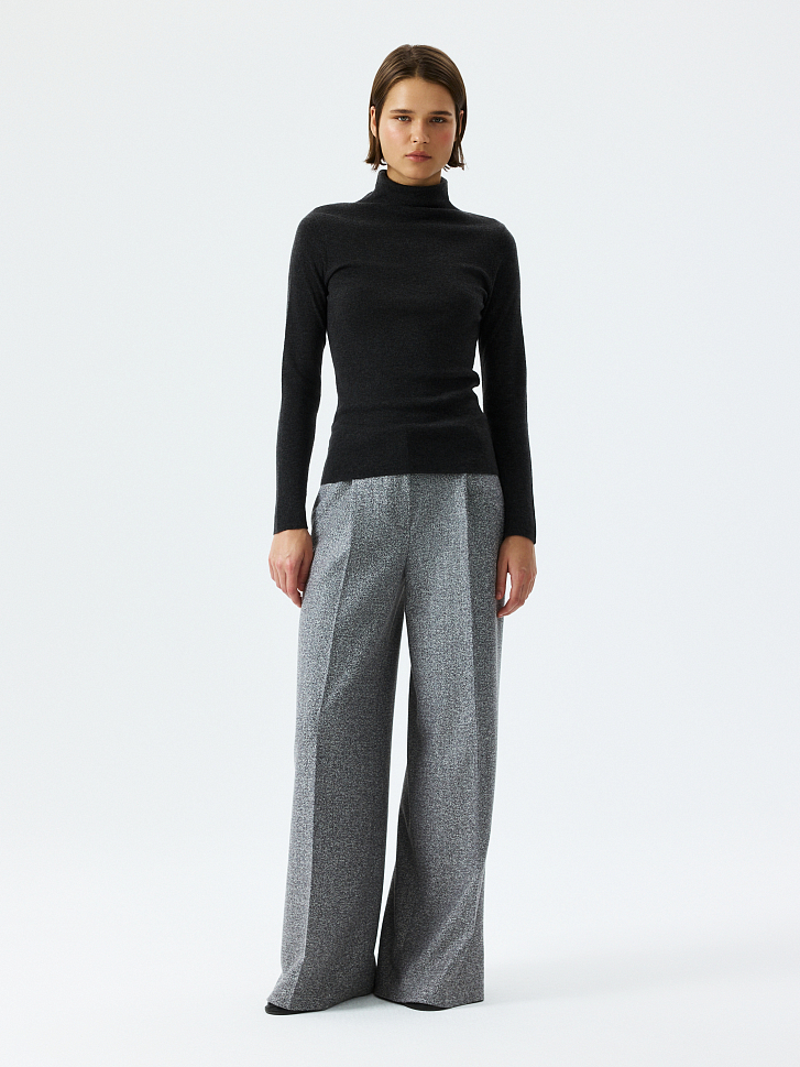 Однотонная базовая водолазка легко впишется в гардероб и останется в нем надолго. В меру плотный гладкий трикотаж с содержанием шерсти мериноса мягко прилегает к телу и не колется, а волокна акрила придают пластичность и формоустойчивость.
