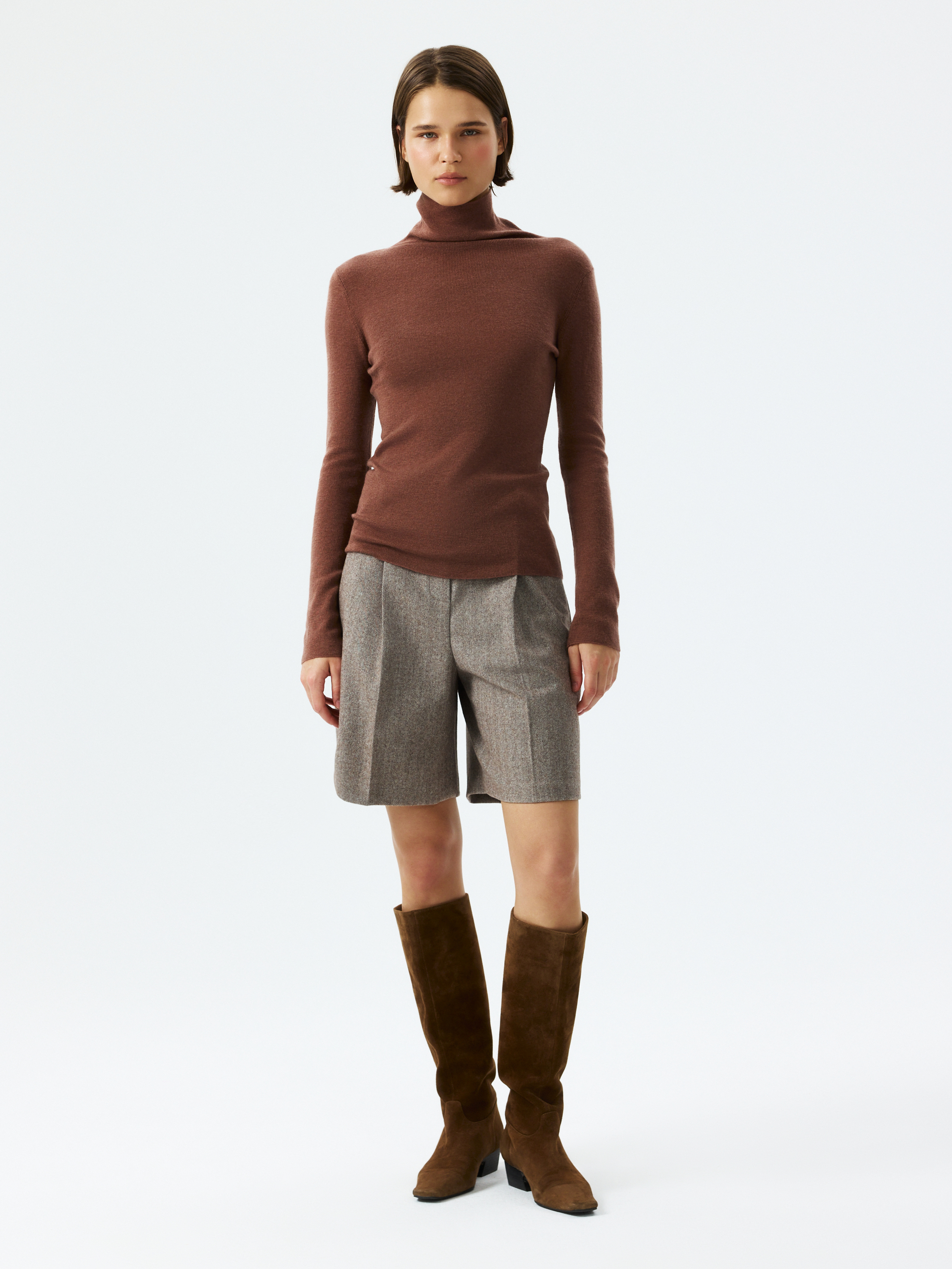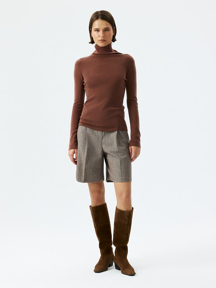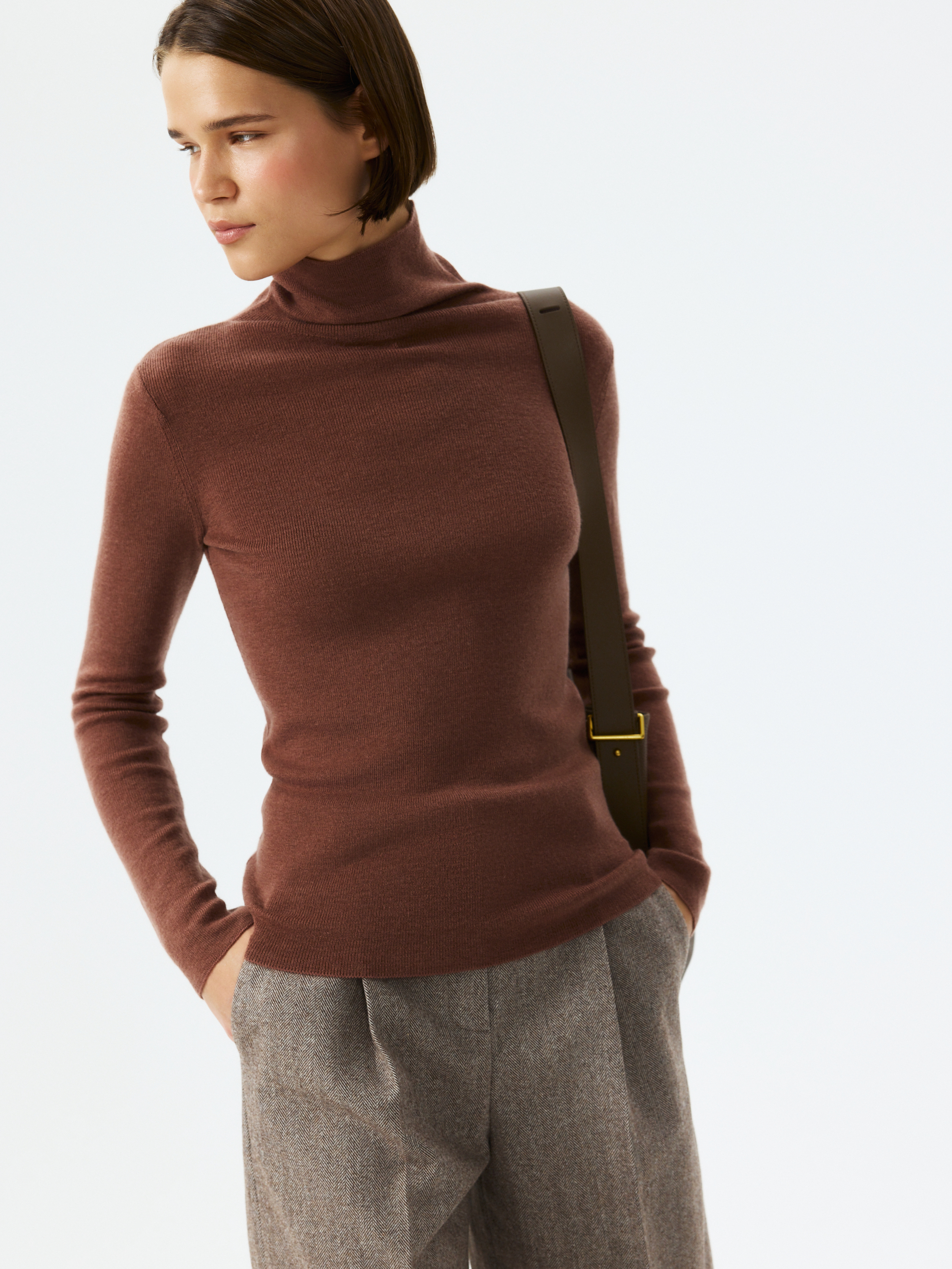 Однотонная базовая водолазка легко впишется в гардероб и останется в нем надолго. В меру плотный гладкий трикотаж с содержанием шерсти мериноса мягко прилегает к телу и не колется, а волокна акрила придают пластичность и формоустойчивость.