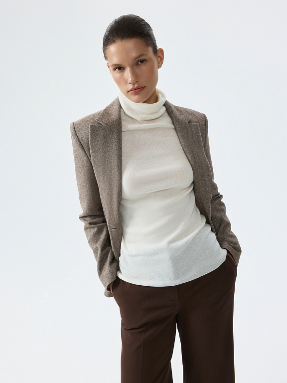 Однотонная базовая водолазка легко впишется в гардероб и останется в нем надолго. В меру плотный гладкий трикотаж с содержанием шерсти мериноса мягко прилегает к телу и не колется, а волокна акрила придают пластичность и формоустойчивость.