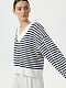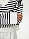 Объемный пуловер в полоску станет одним из главных в базовом гардеробе. В меру плотная гладкая пряжа на основе вискозы мягко прилегает, а искусственные волокна придают прочности и износоустойчивости. Спущенная линия плеча не сковывает движения и дарит комфортную посадку.