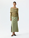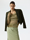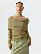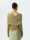 Джемпер с открытыми плечами подчеркнет женственность силуэта. Уникальным изделие делают детали кроя: драпировки по бокам, а также широкий отворот, высоту и положение которого можно регулировать. Сетчатый трикотаж с люрексом хорошо тянется и комфортно облегает.