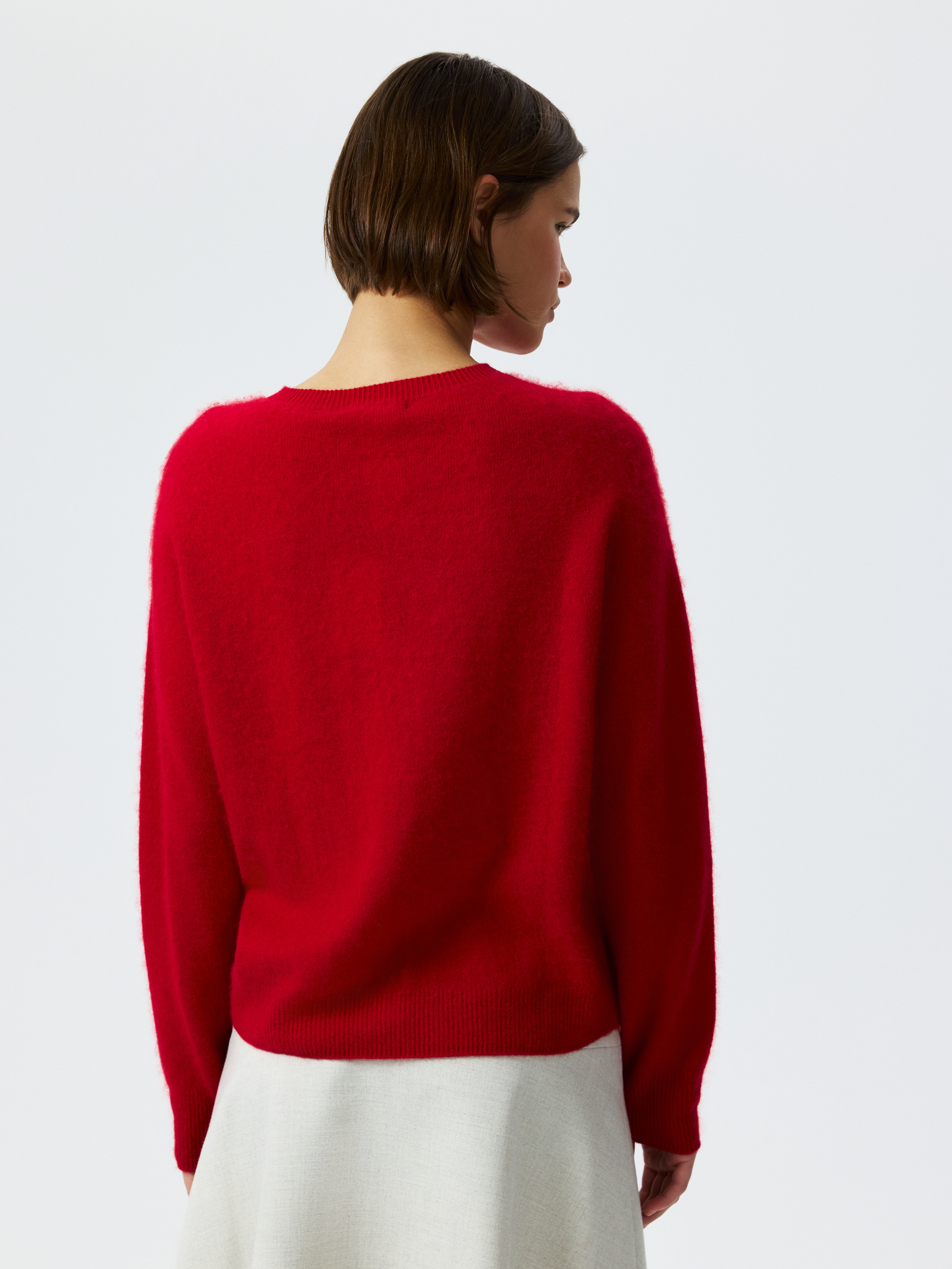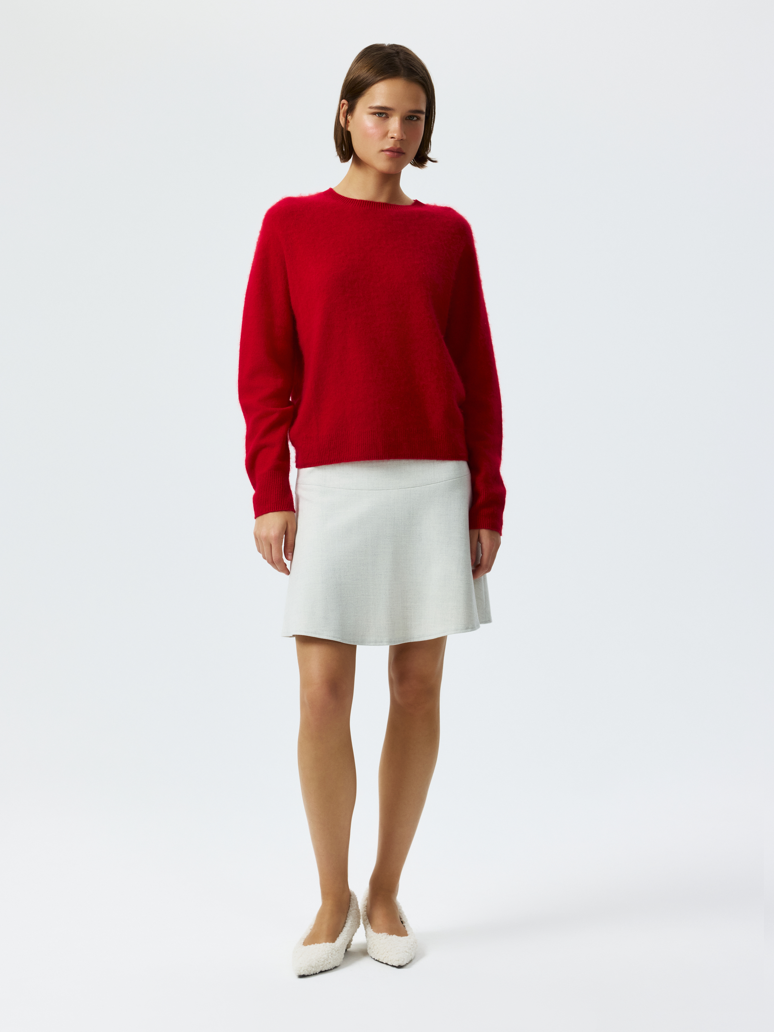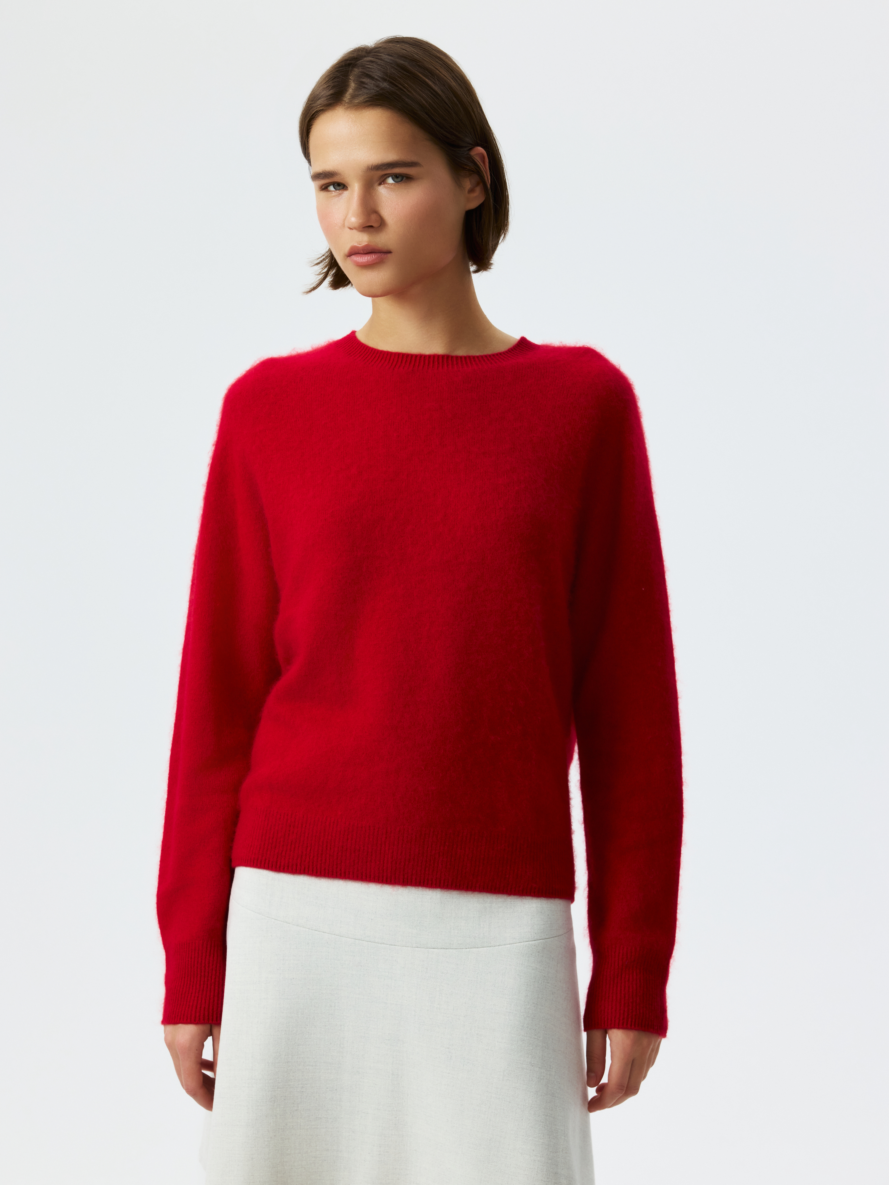 Базовый джемпер – модель вне трендов, и его можно сделать частью повседневных образов или более элегантных сочетаний. Плотный пушистый трикотаж из мериносовой шерсти мягко прилегает, хорошо сохраняет тепло и приятен в носке.