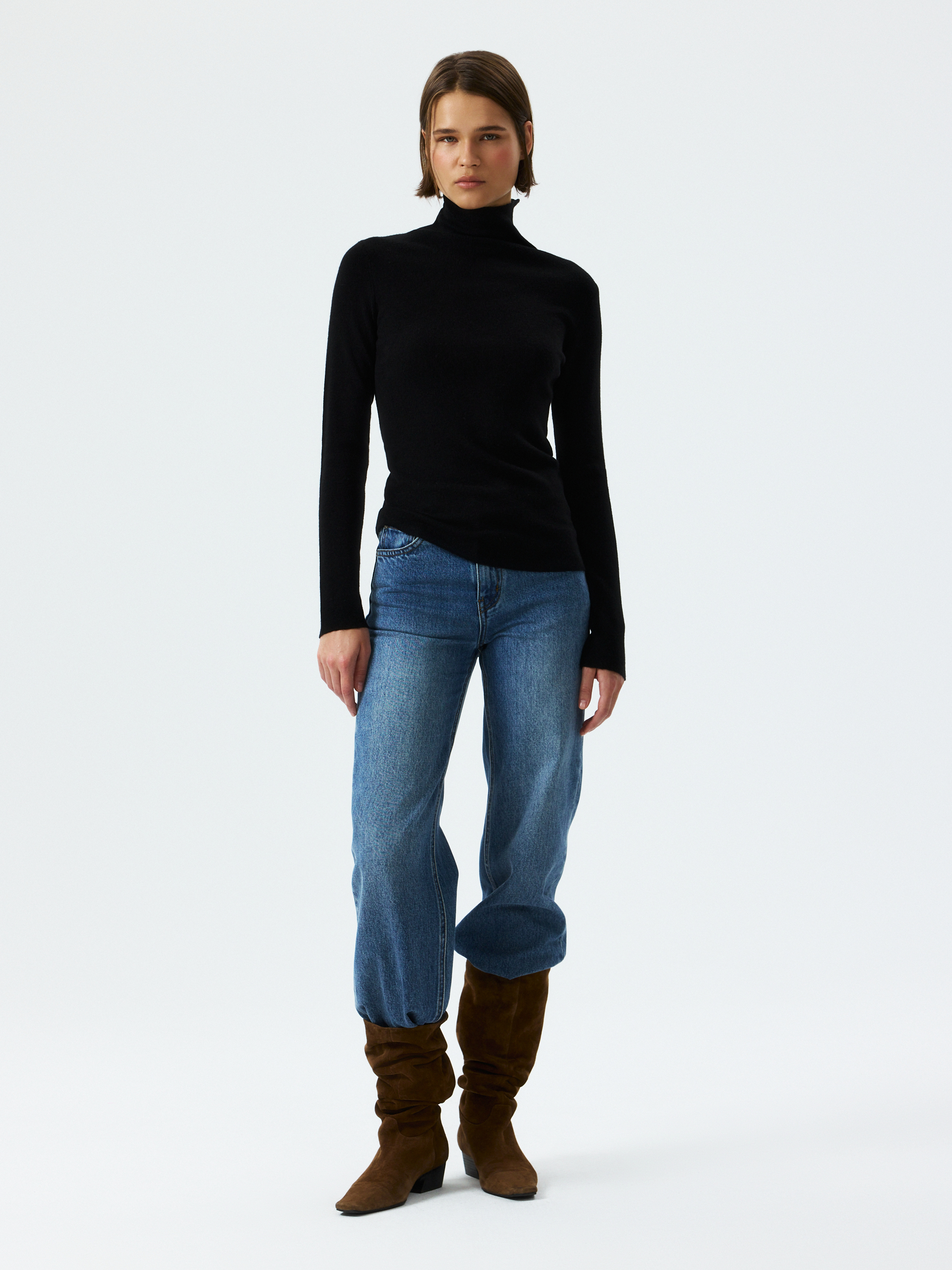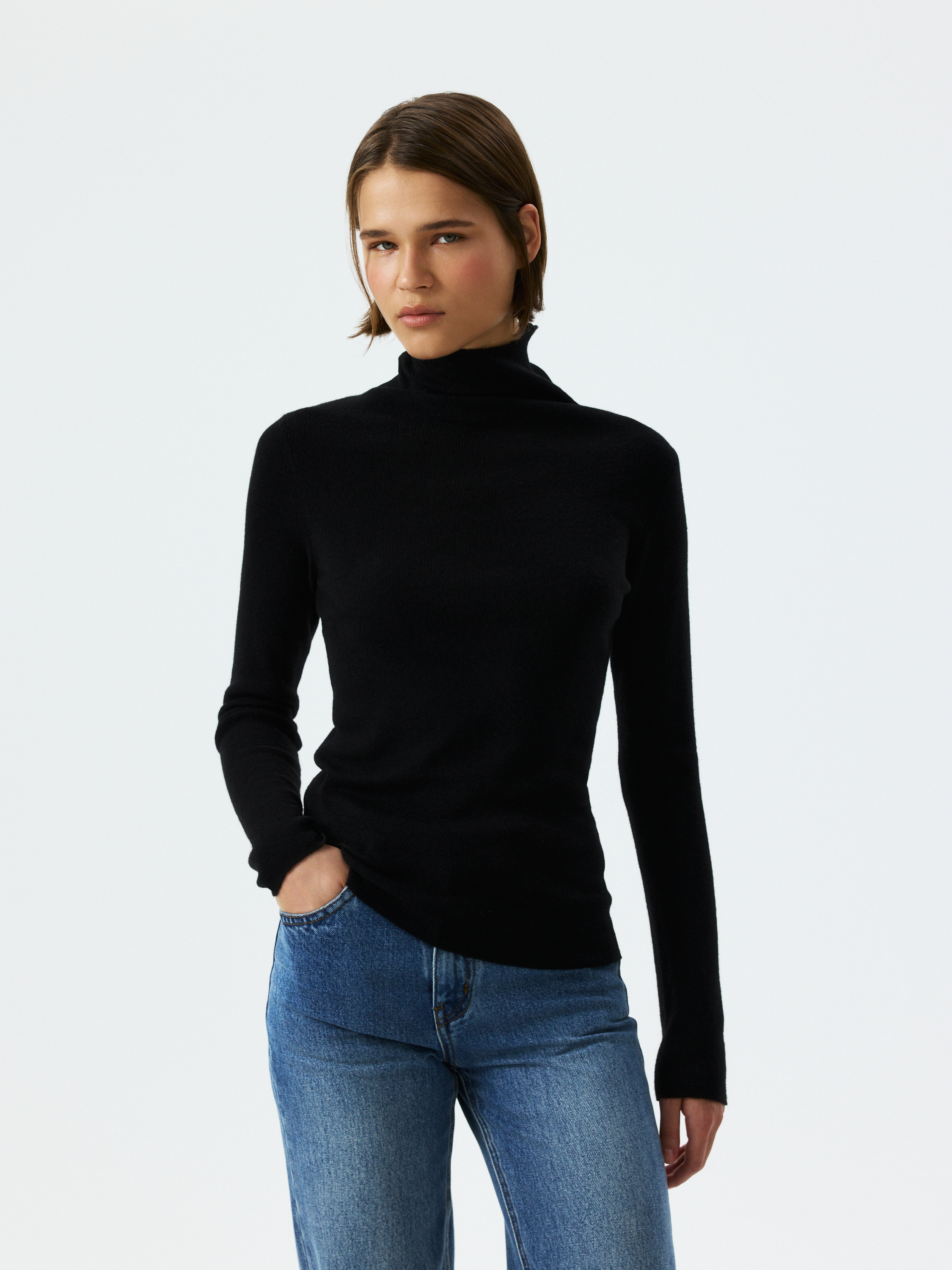 Однотонная базовая водолазка легко впишется в гардероб и останется в нем надолго. В меру плотный гладкий трикотаж с содержанием шерсти мериноса мягко прилегает к телу и не колется, а волокна акрила придают пластичность и формоустойчивость.