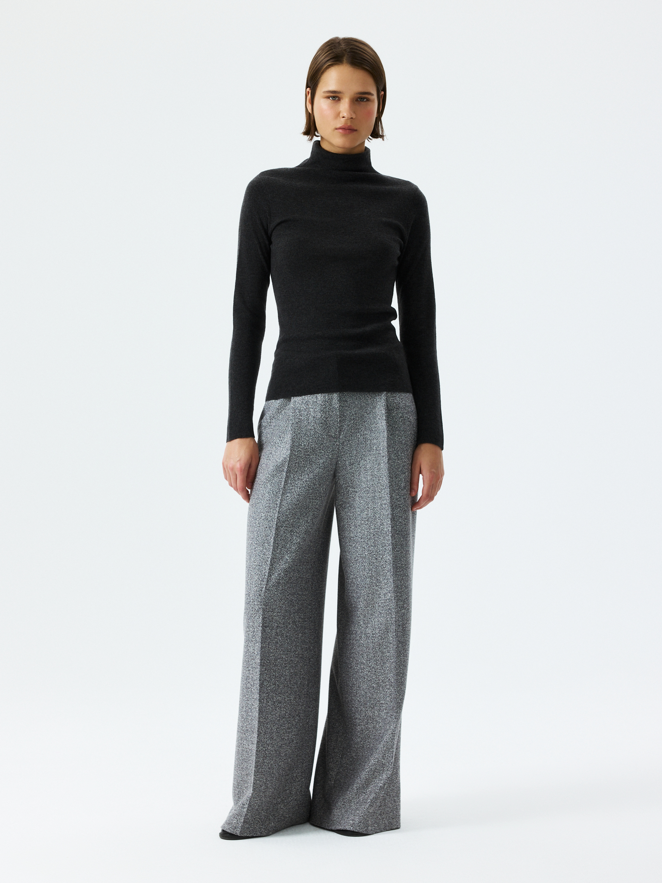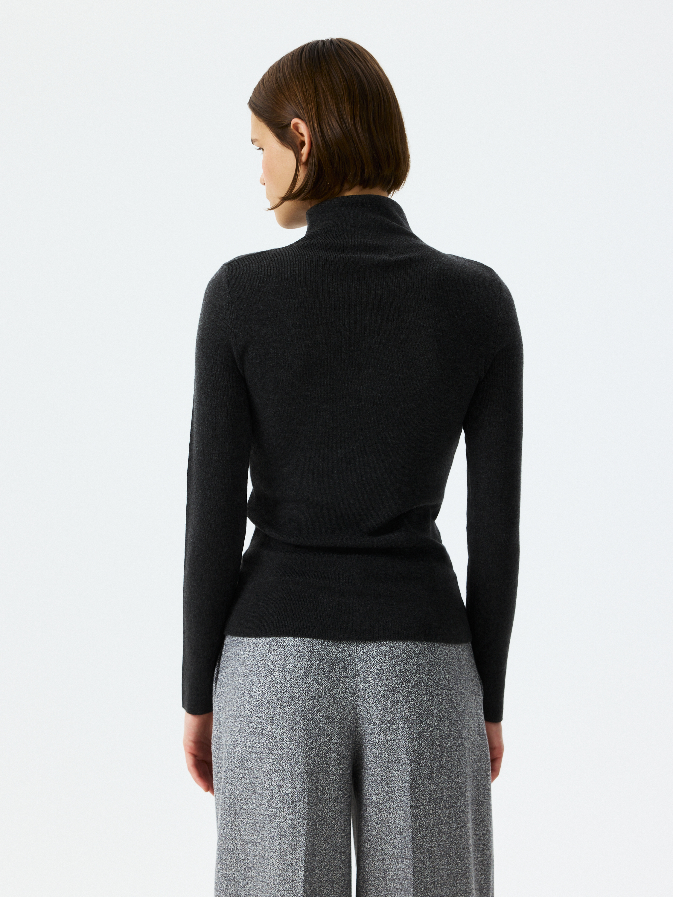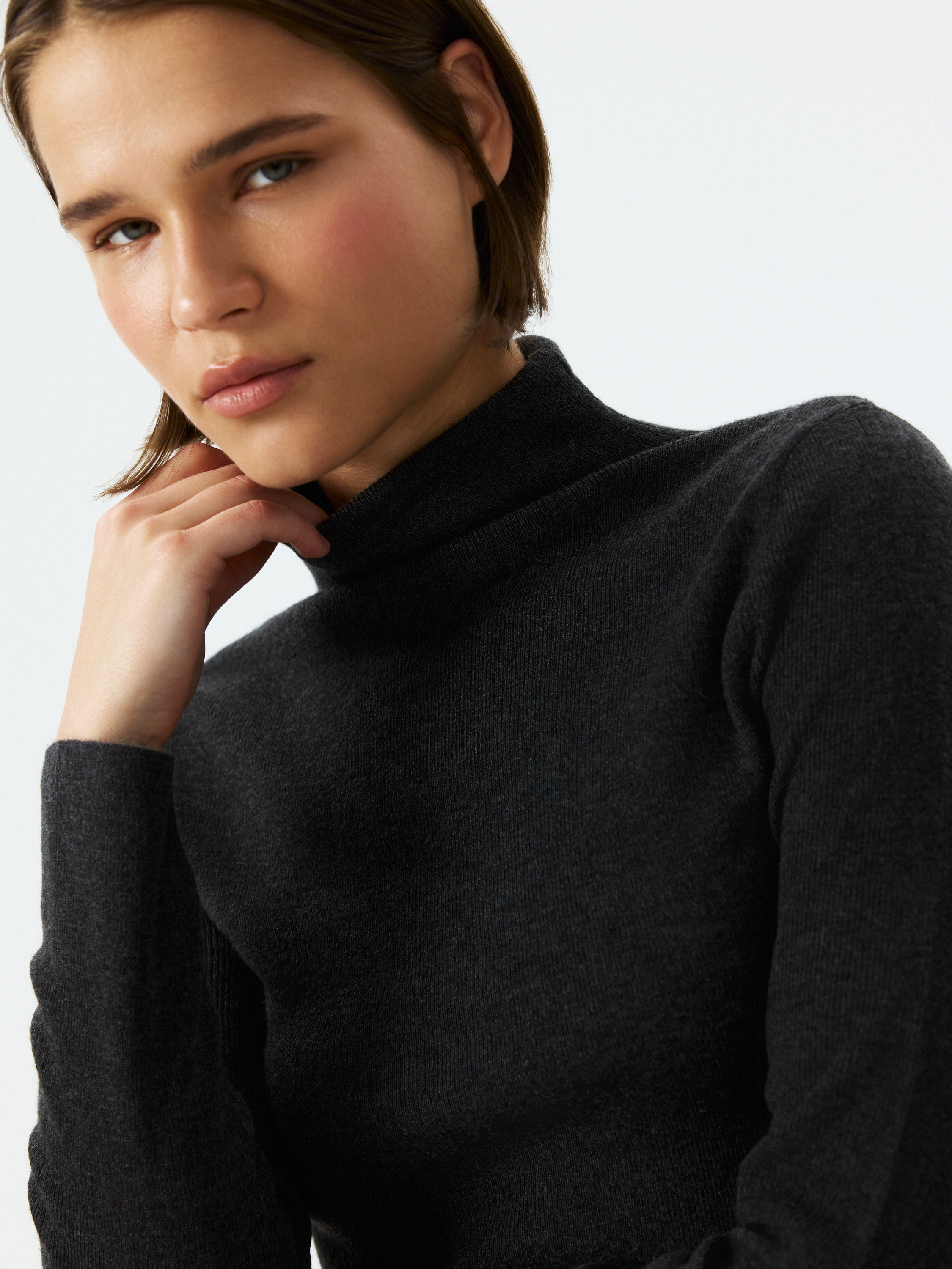 Однотонная базовая водолазка легко впишется в гардероб и останется в нем надолго. В меру плотный гладкий трикотаж с содержанием шерсти мериноса мягко прилегает к телу и не колется, а волокна акрила придают пластичность и формоустойчивость.