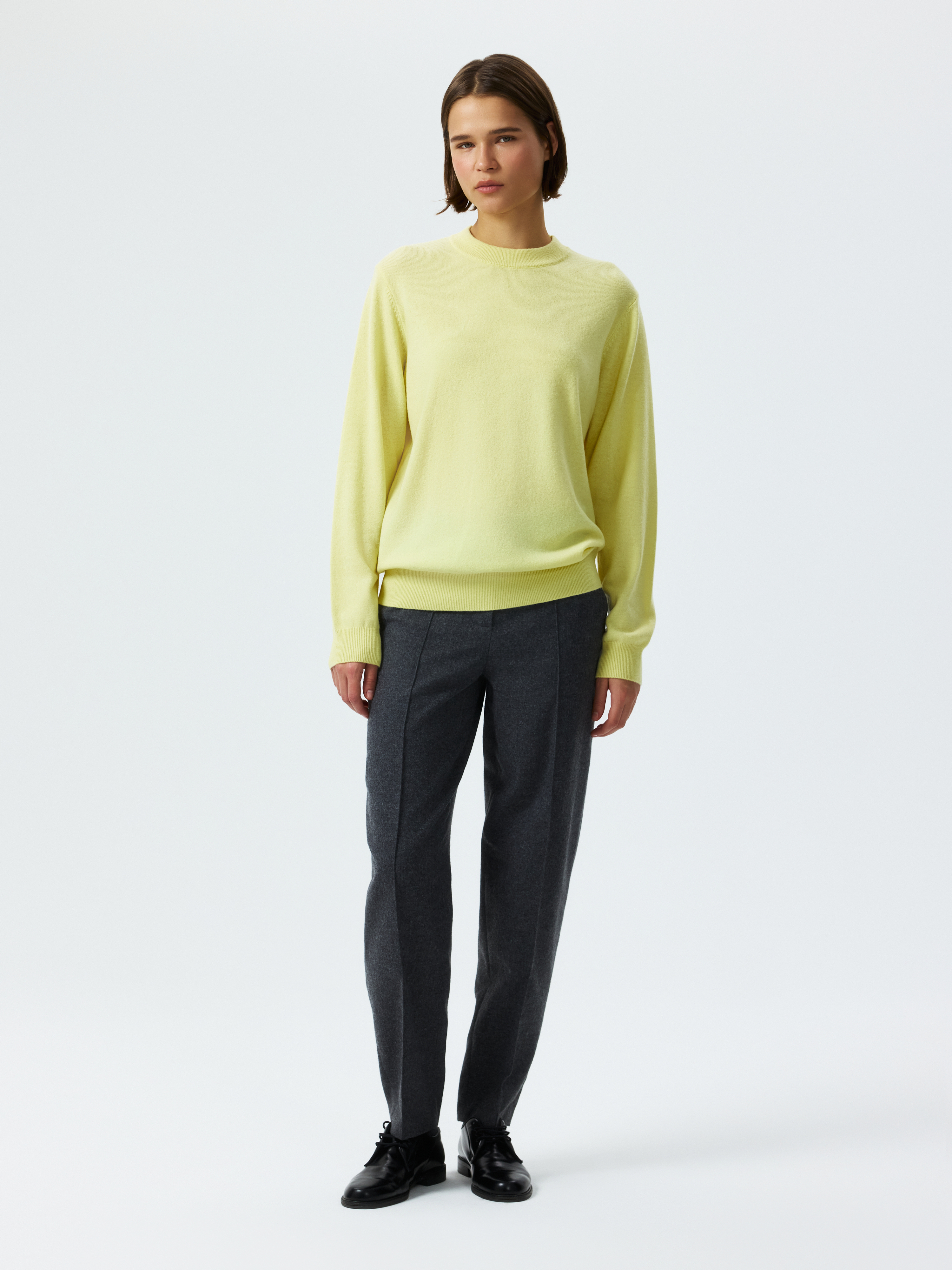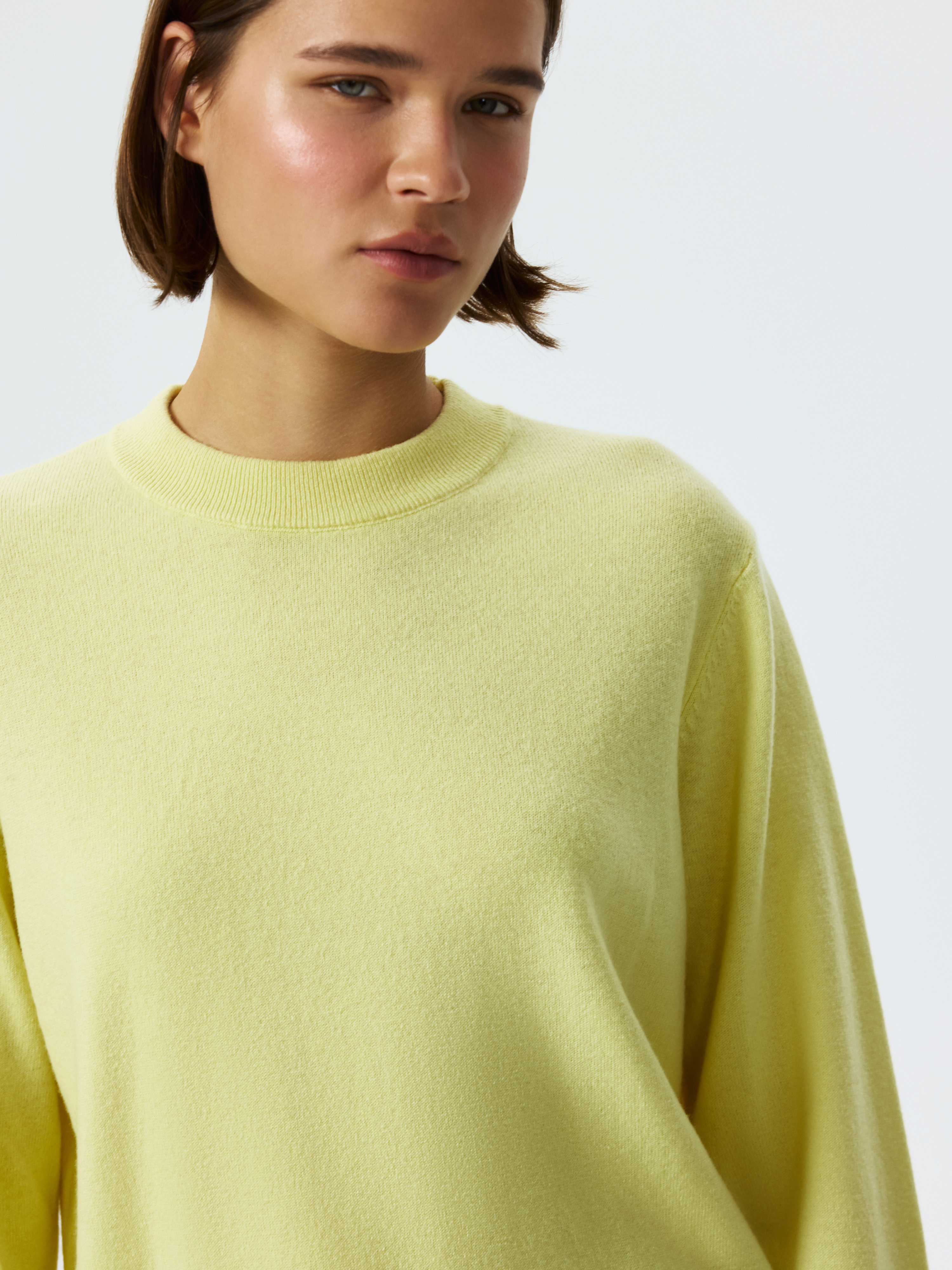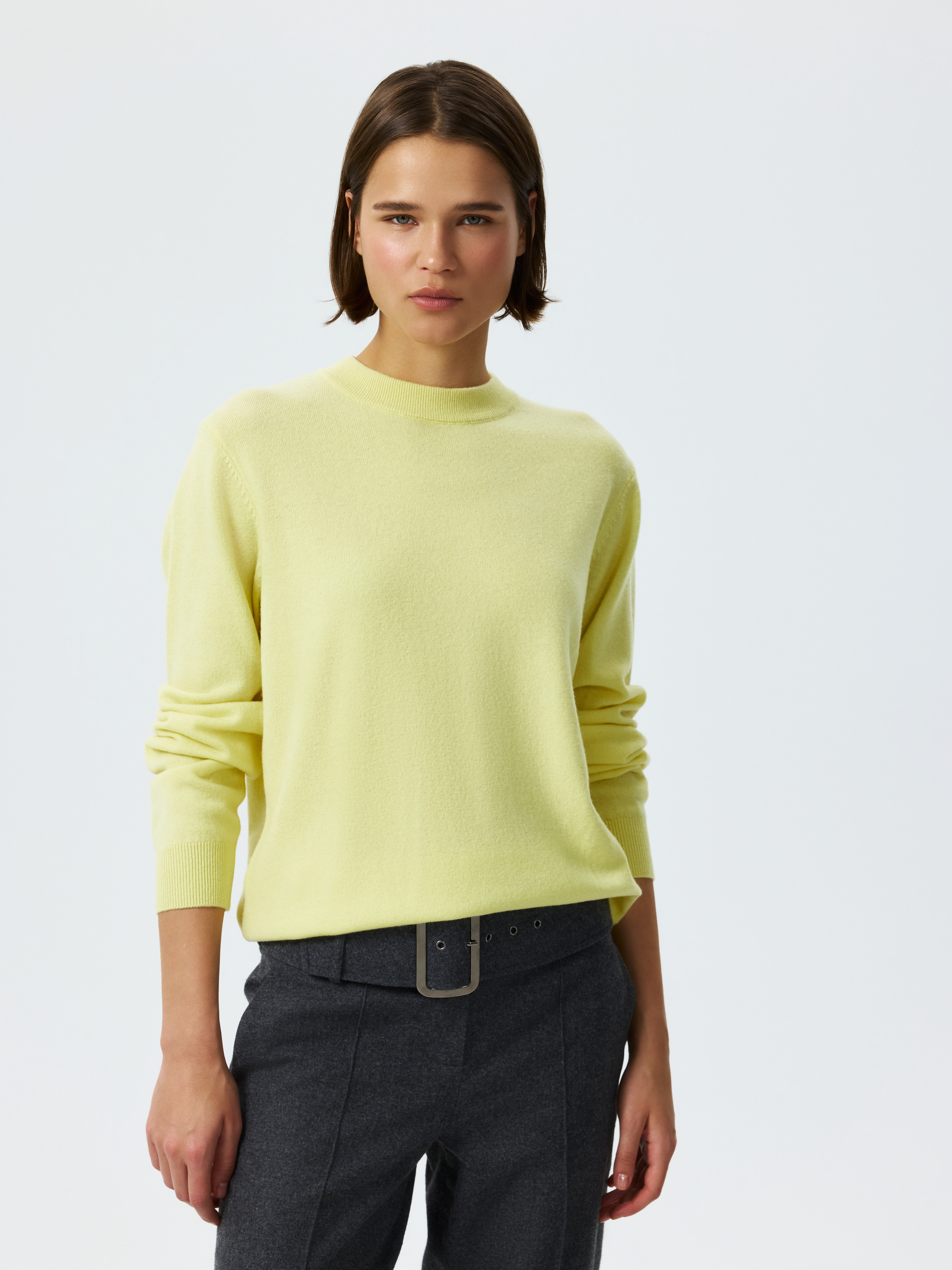 Шерстяной джемпер прекрасно подходит для повседневных образов, являясь идеальным фоном для невероятного разнообразия стилей. Гладкий трикотаж средней плотности сделали нежнее и мягче при помощи кашемира, поэтому изделие мягко прилегает к телу и не колется.