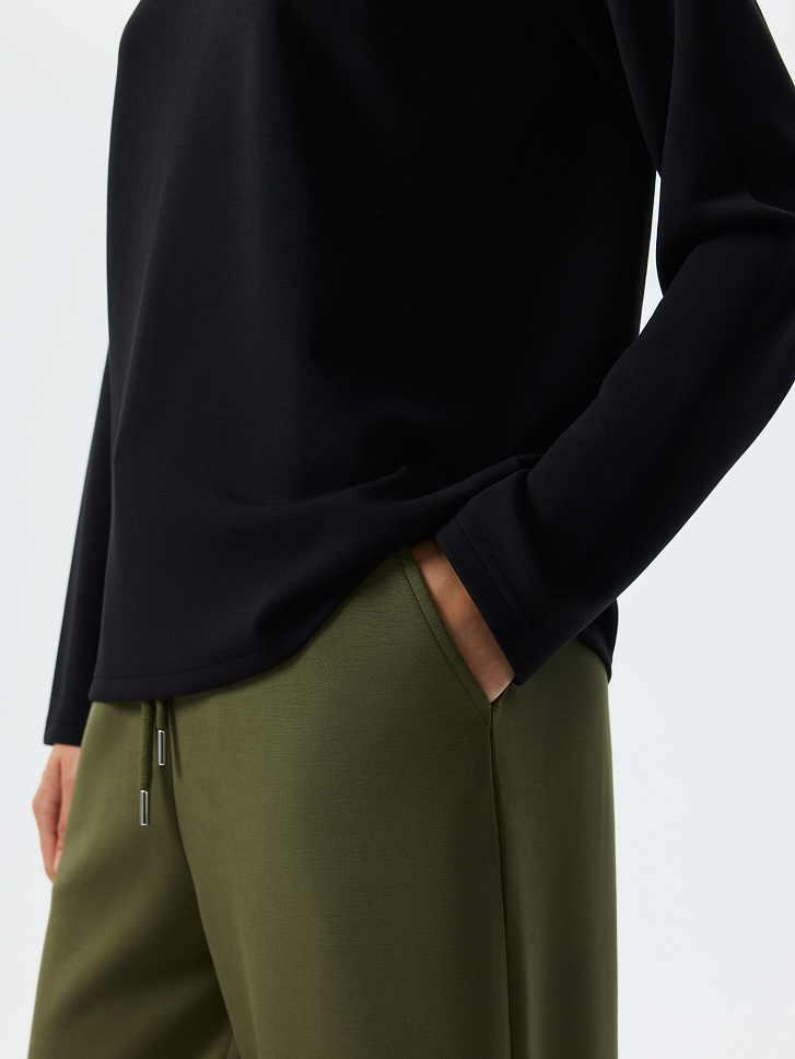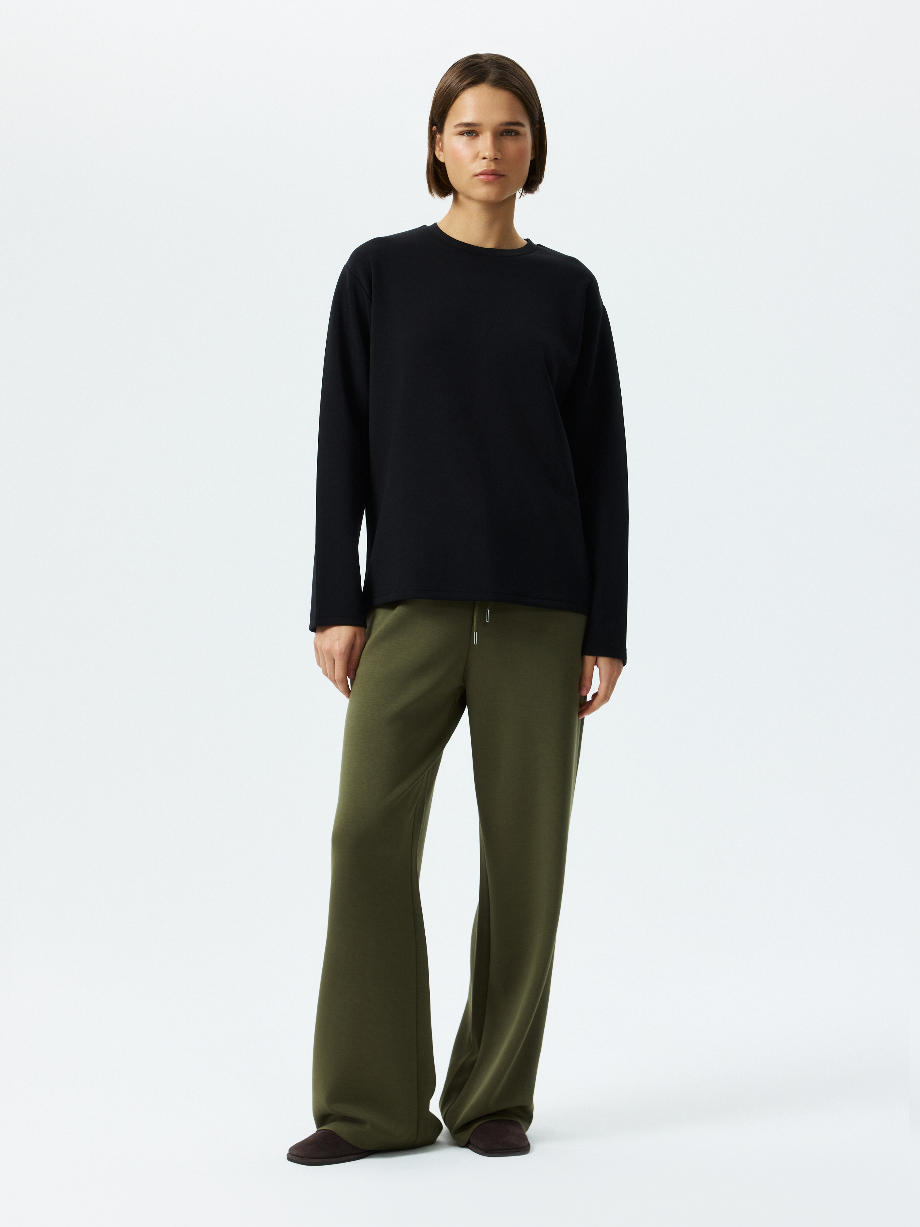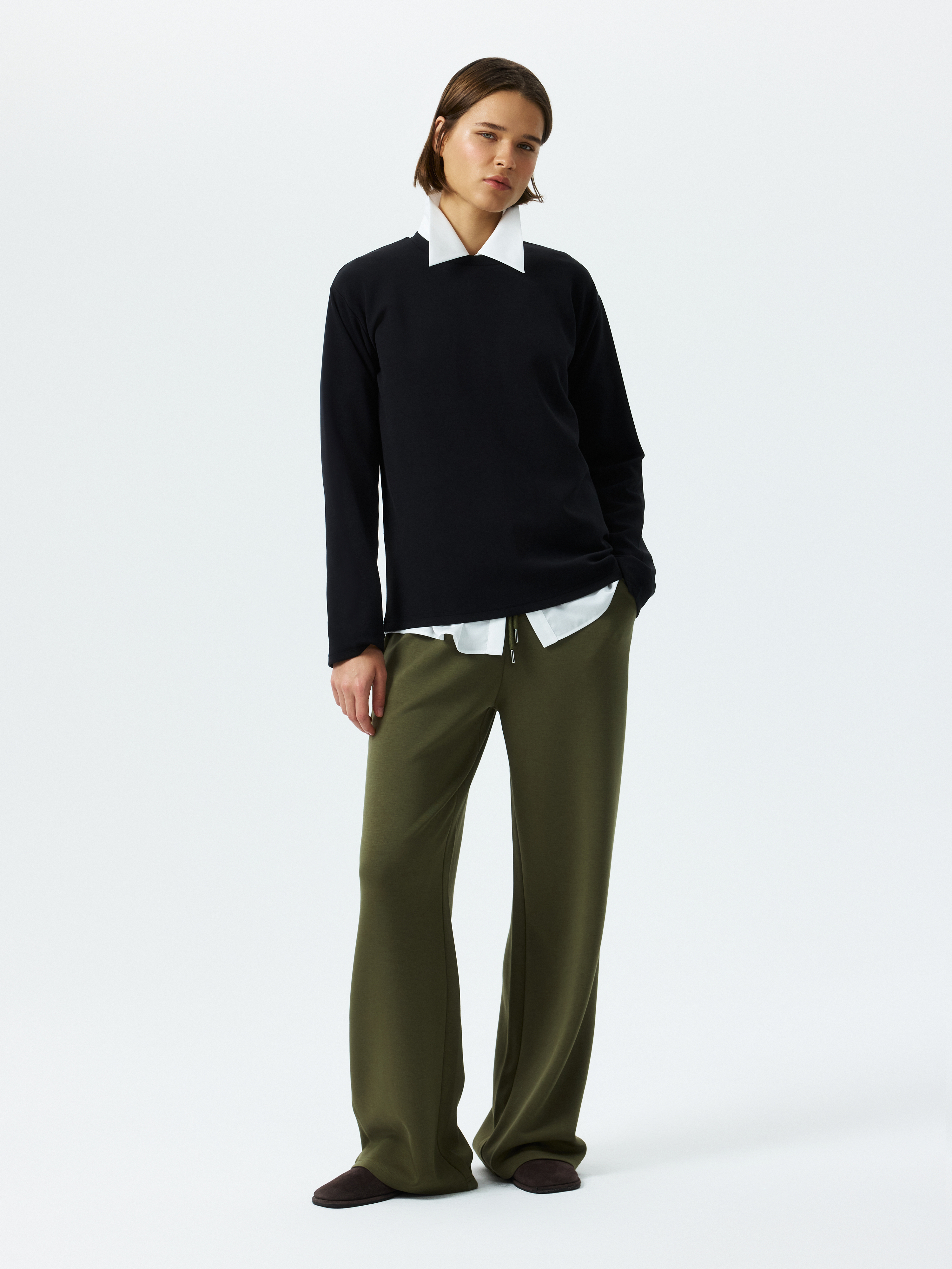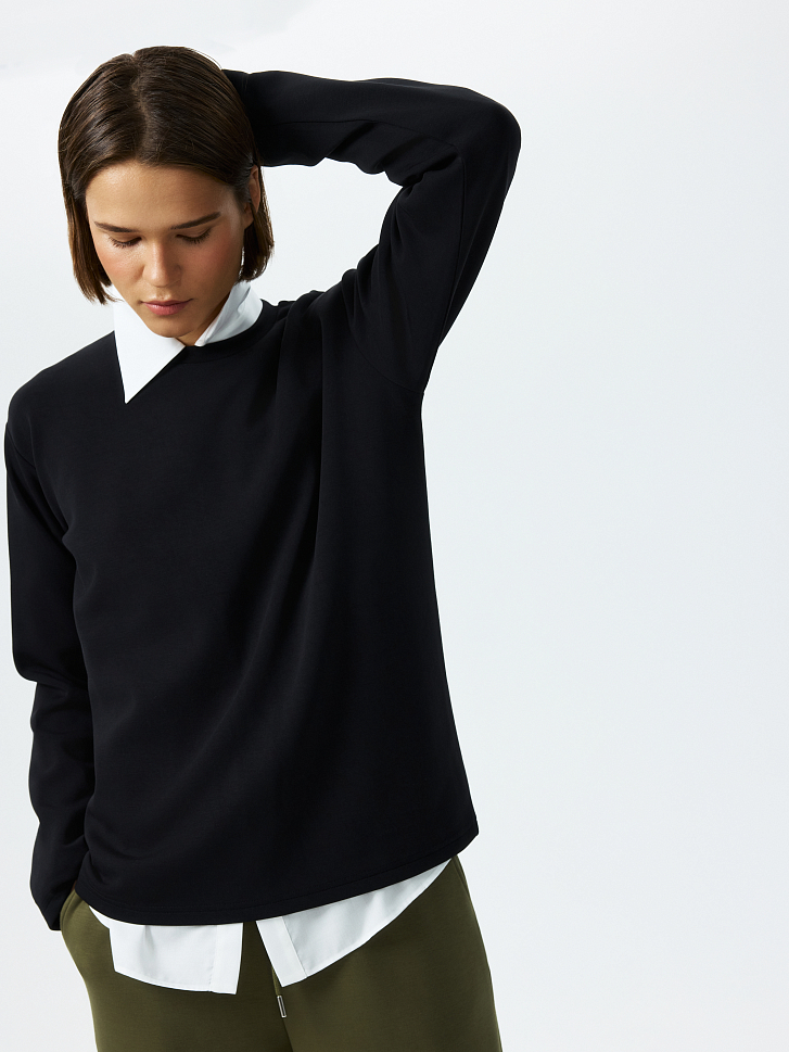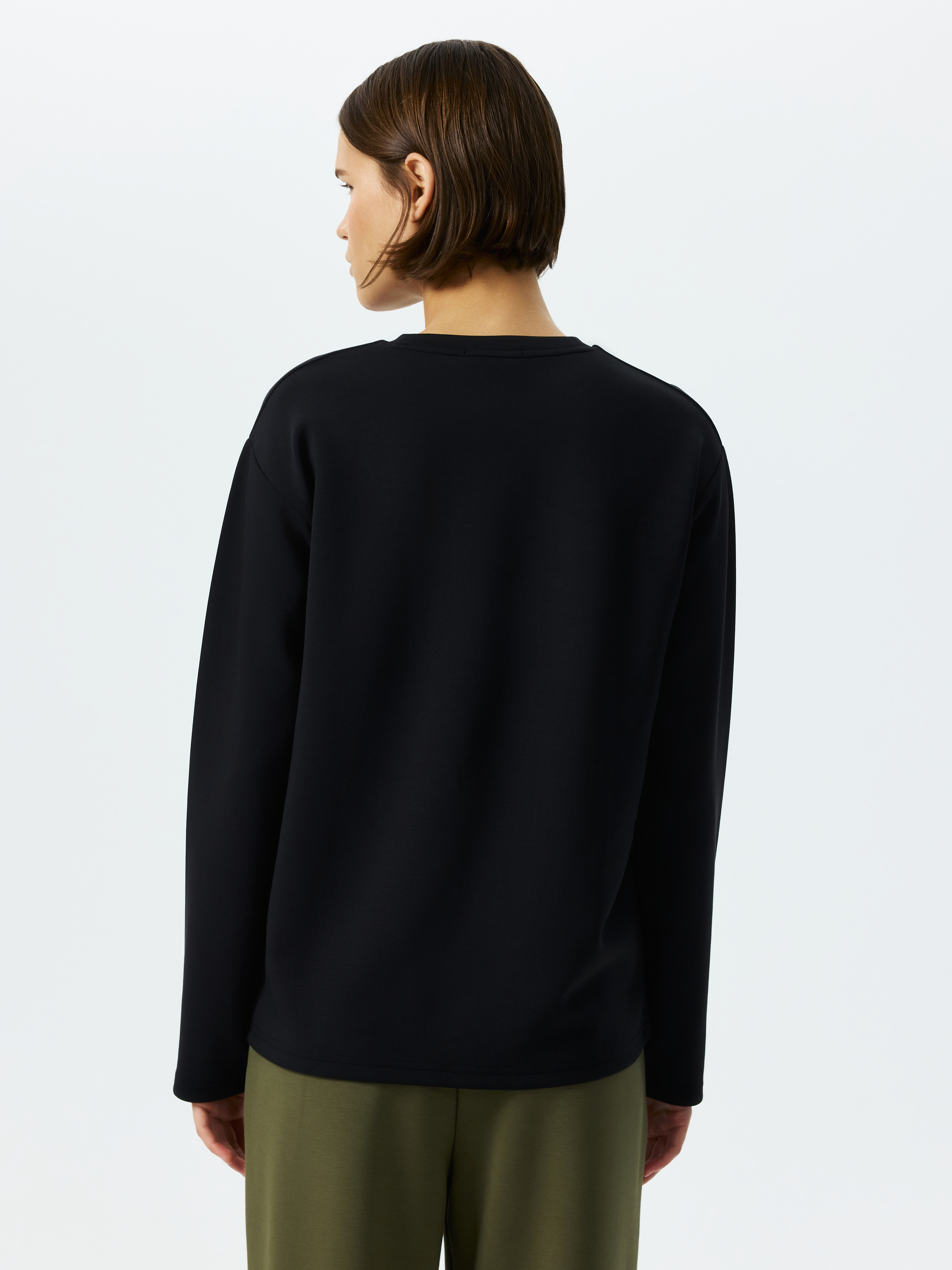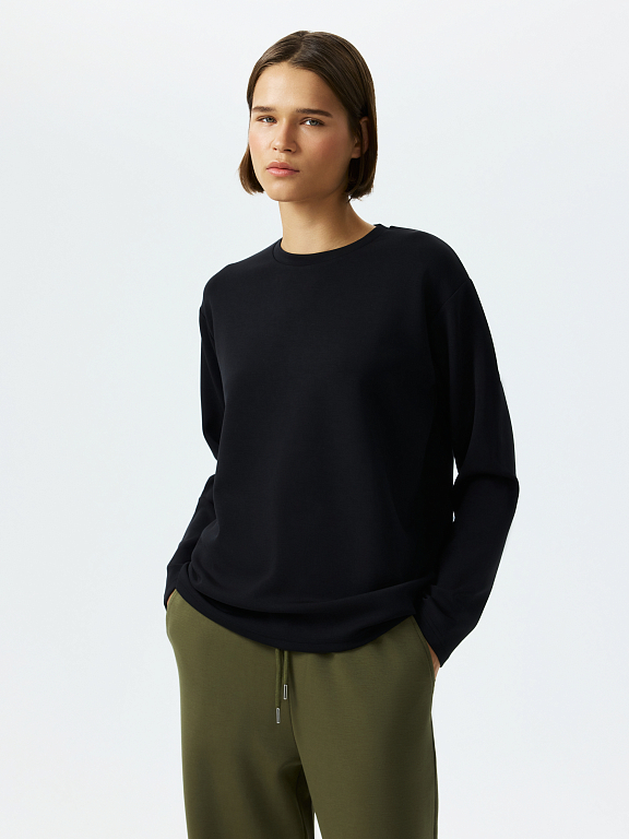 Лонгслив прямого кроя подходит как для занятий спортом, так и для составления повседневных образов. Плотный гладкий трикотаж с эффектом лайкры хорошо тянется, при этом не меняет свою первоначальную форму и не мнется. Модель расслабленно сидит по фигуре и не сковывает движения.