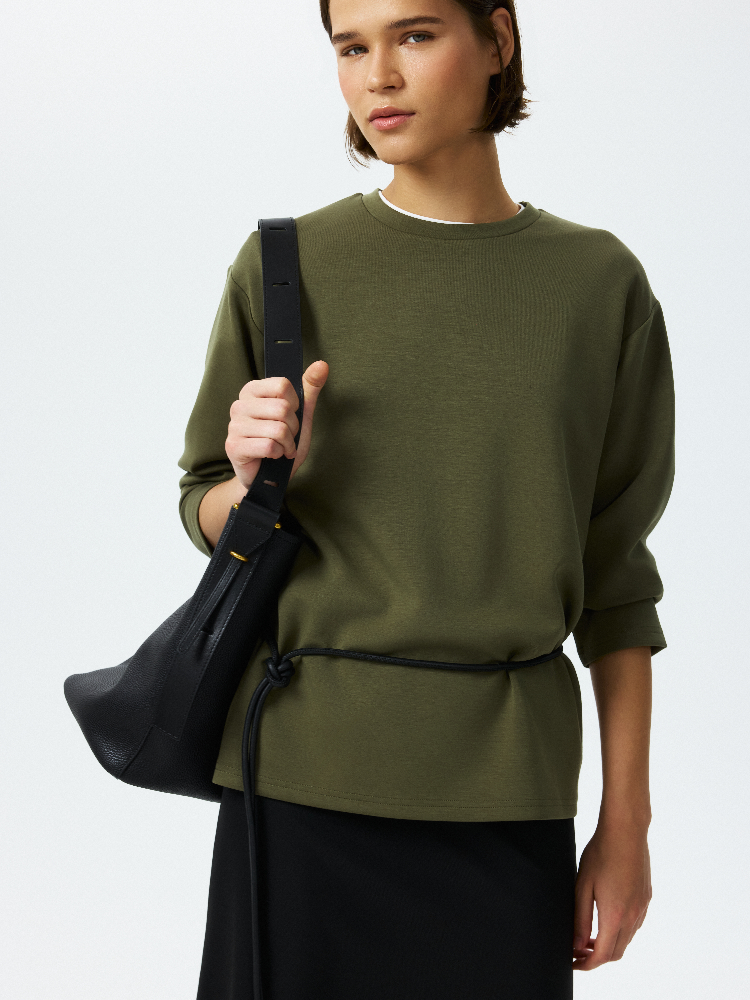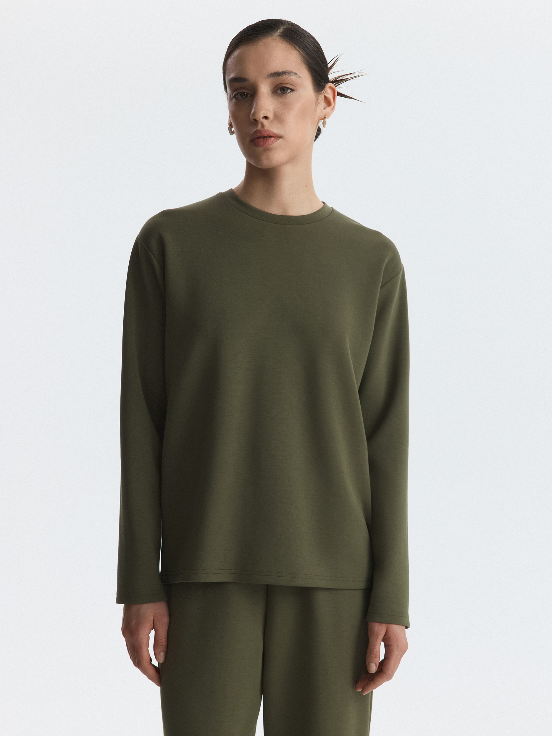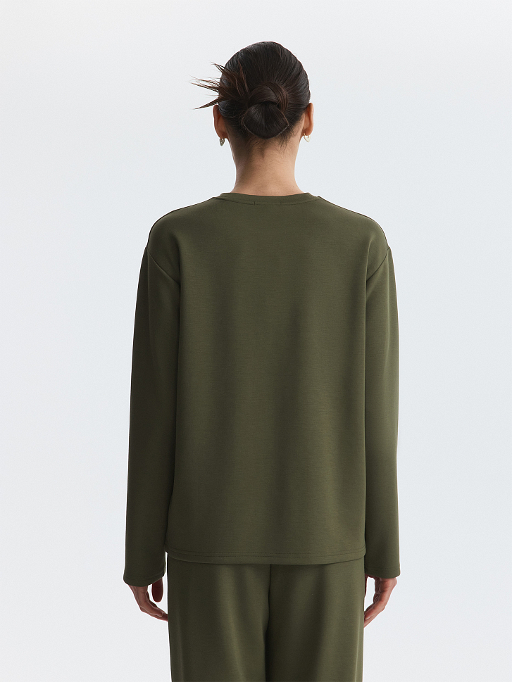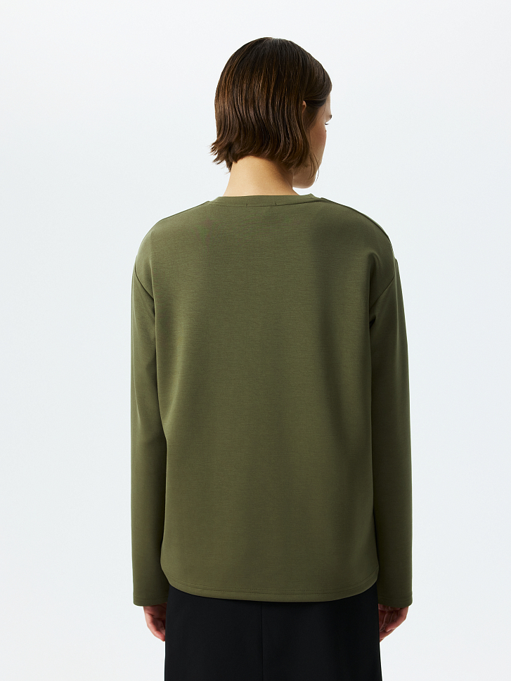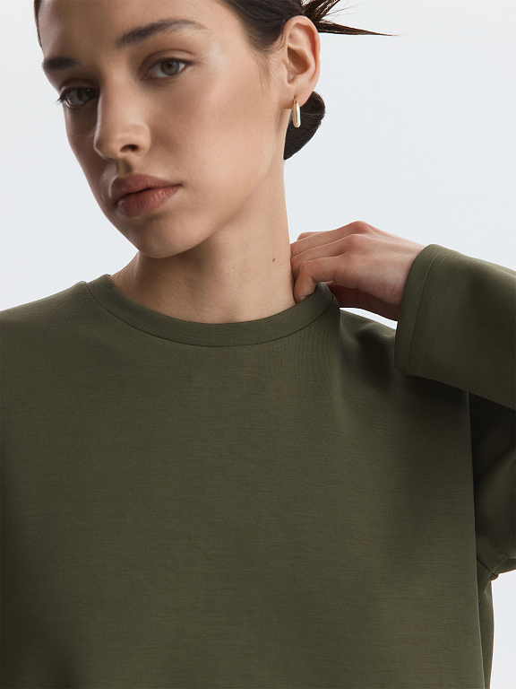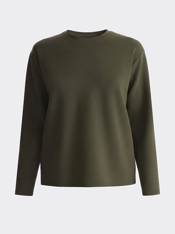 Лонгслив прямого кроя подходит как для занятий спортом, так и для составления повседневных образов. Плотный гладкий трикотаж с эффектом лайкры хорошо тянется, при этом не меняет свою первоначальную форму и не мнется. Модель расслабленно сидит по фигуре и не сковывает движения.