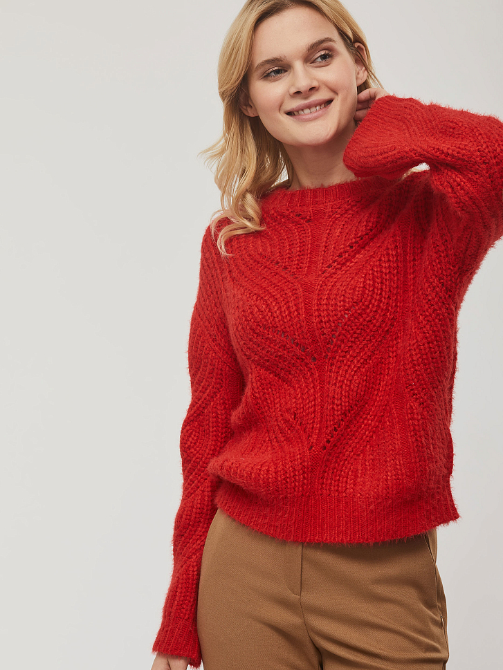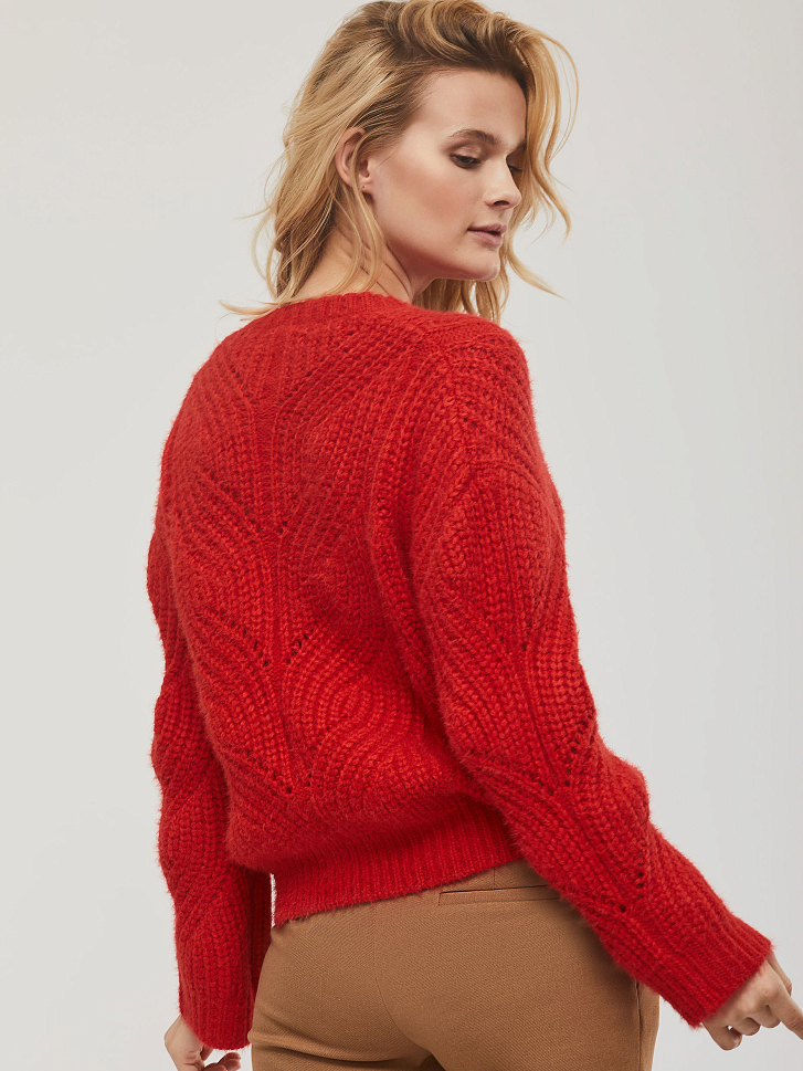 Красный свитер крупной вязки