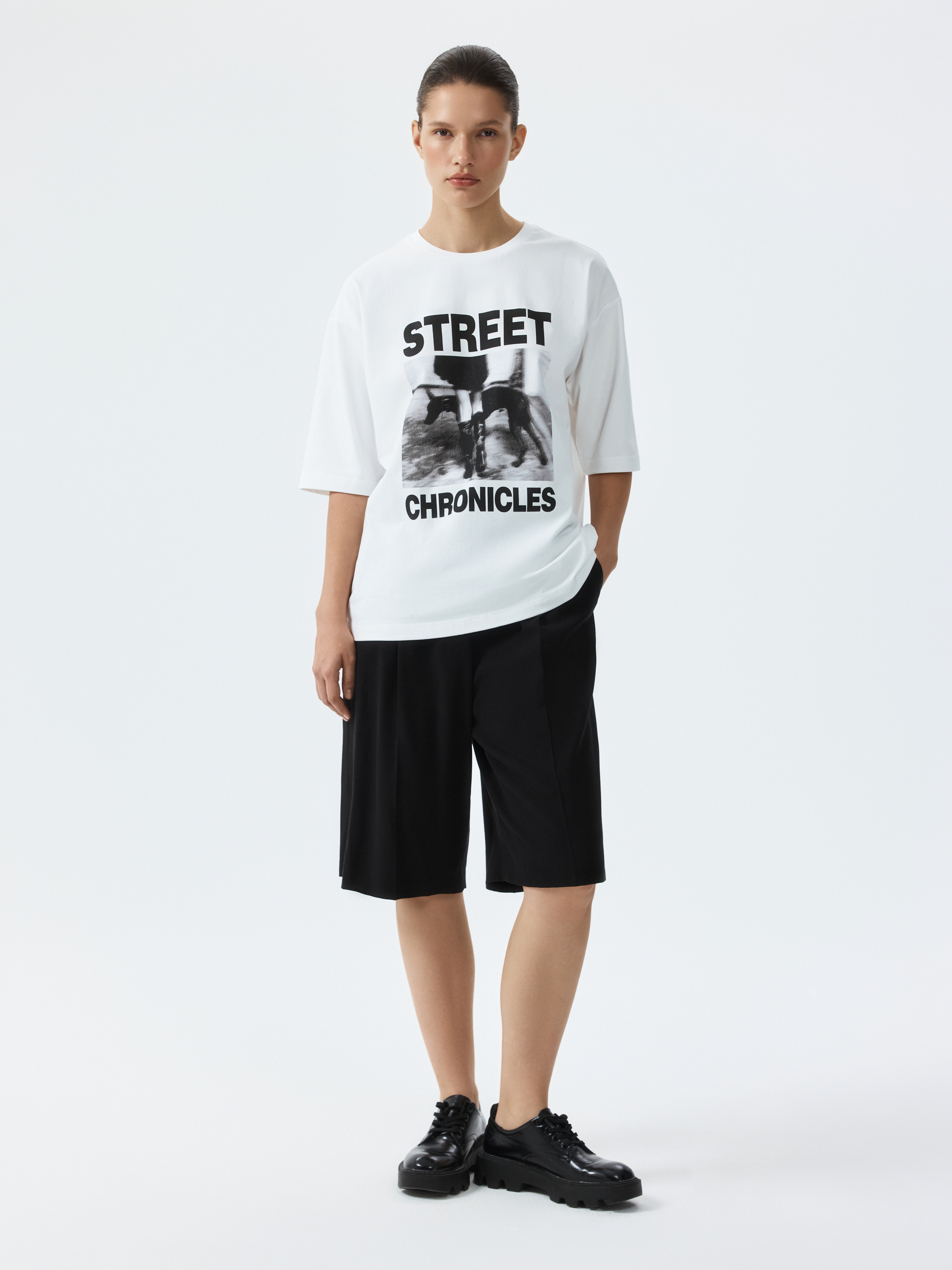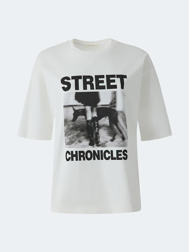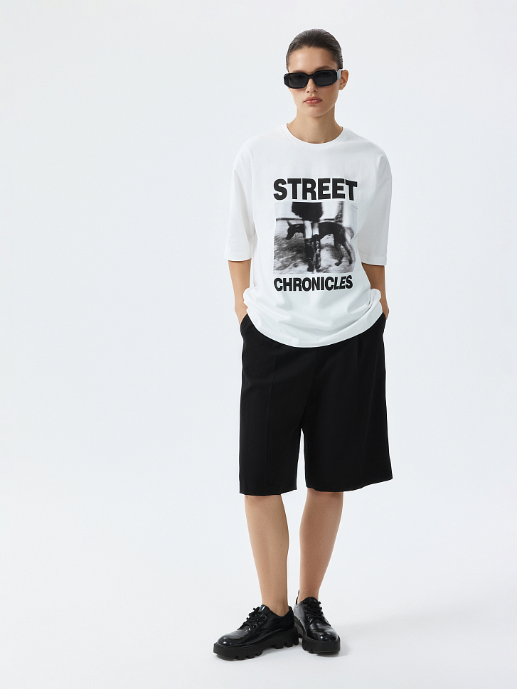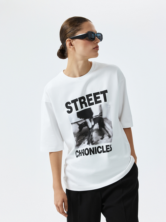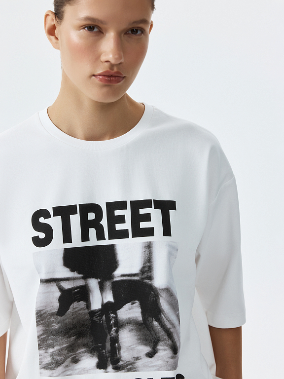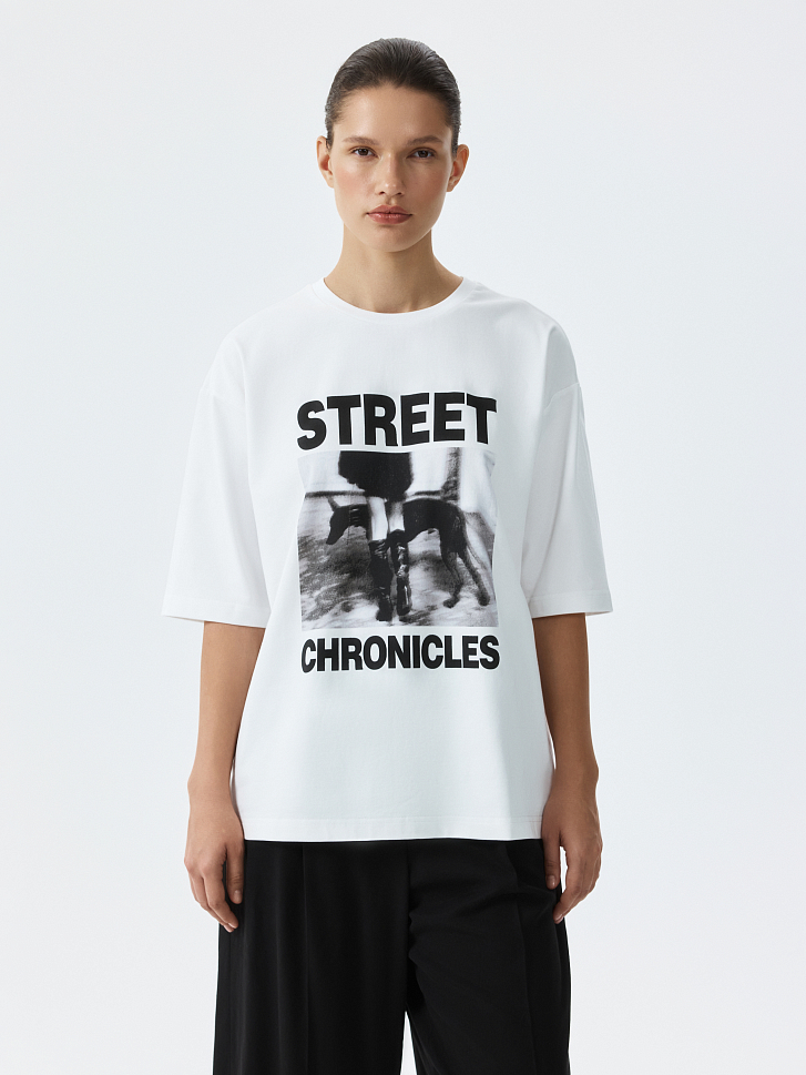 Футболка с фотопринтом – лучший способ намекнуть о своем настроении. Плотный гладкий трикотаж из натурального хлопка хорошо пропускает воздух и обеспечивает комфорт. Модель прямого кроя расслабленно сидит по фигуре.