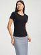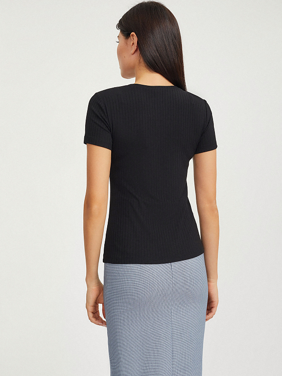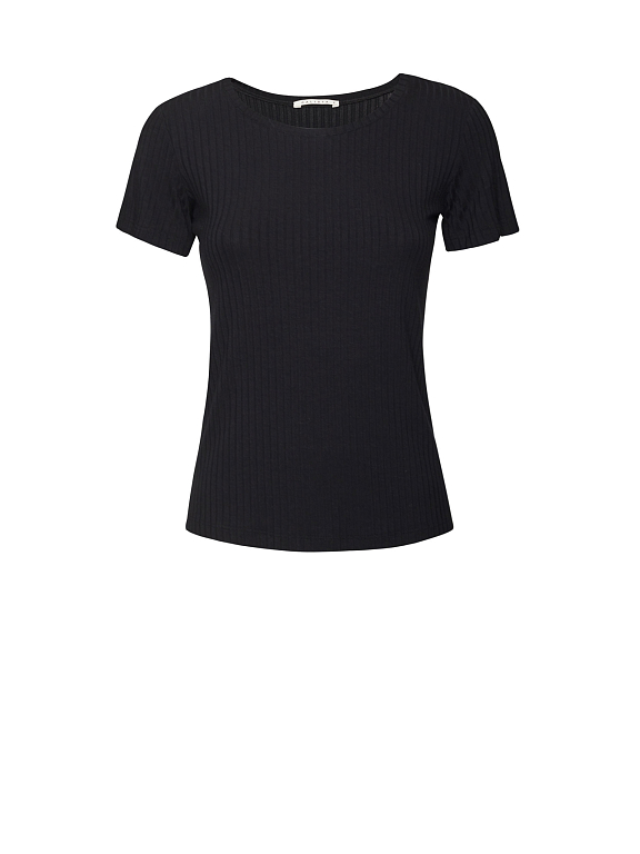 Однотонная футболка из трикотажа в рубчик. Облегающий крой, округлый вырез, короткие рукава.