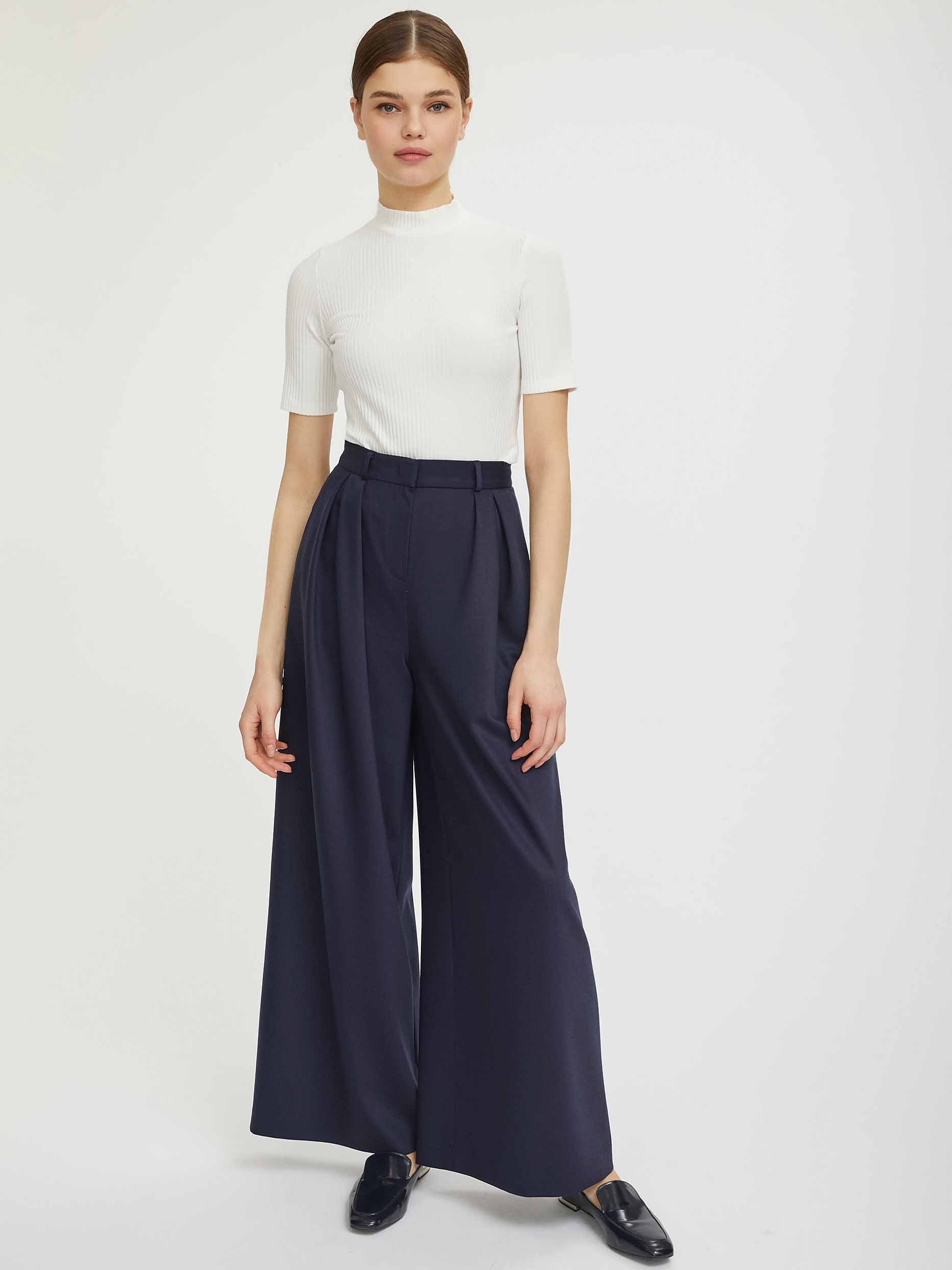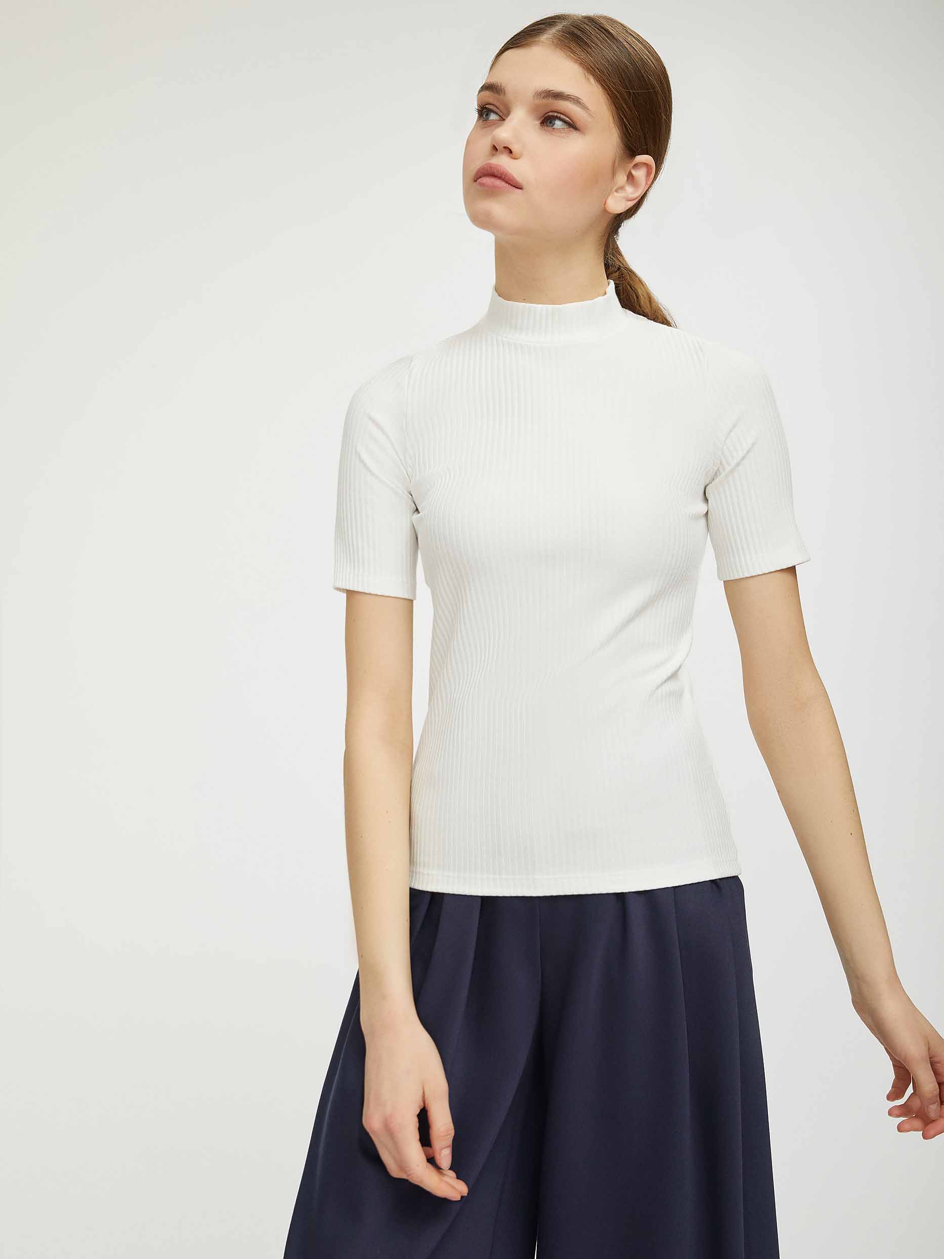 Джемпер, выполненный из мягкого трикотажа. Воротник-стойка, полуприлегающий силуэт, короткие рукава.